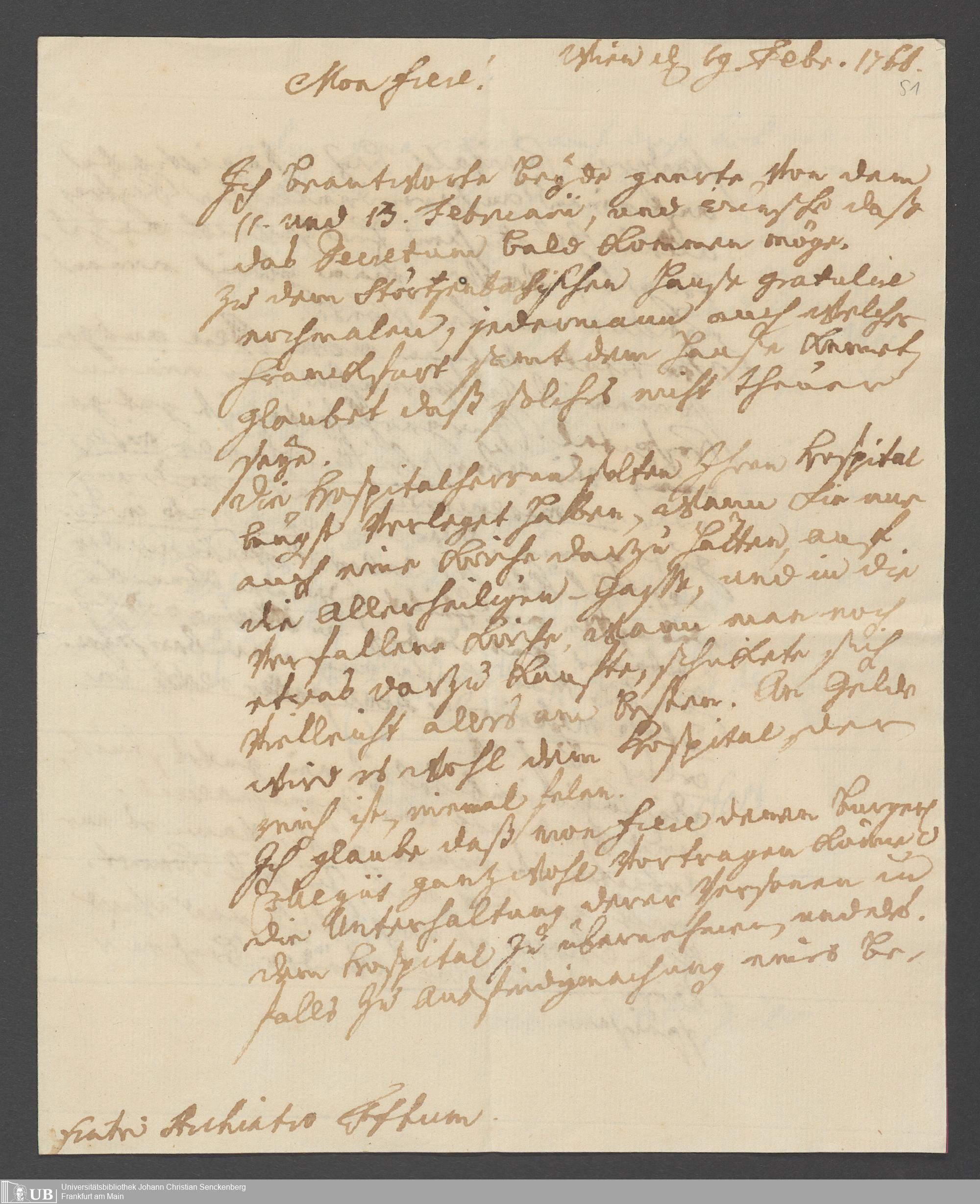 Na 31 Nachlass Johann Christian Senckenberg, 356 - Briefe Heinrich Christian Senckenbergs