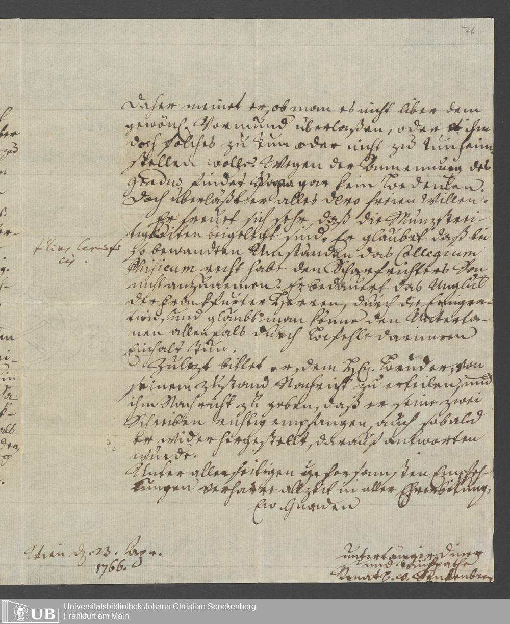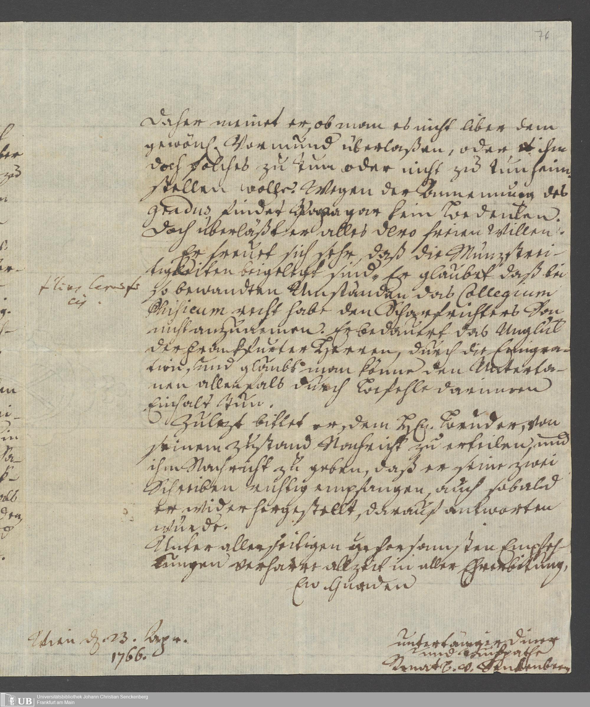 Na 31 Nachlass Johann Christian Senckenberg, 356 - Briefe Heinrich Christian Senckenbergs