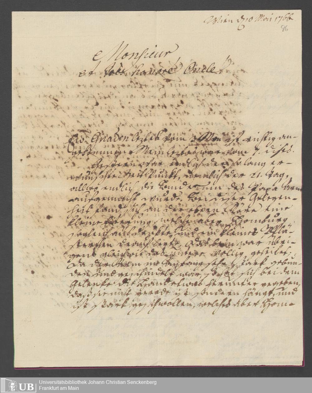 Na 31 Nachlass Johann Christian Senckenberg, 356 - Briefe Heinrich Christian Senckenbergs