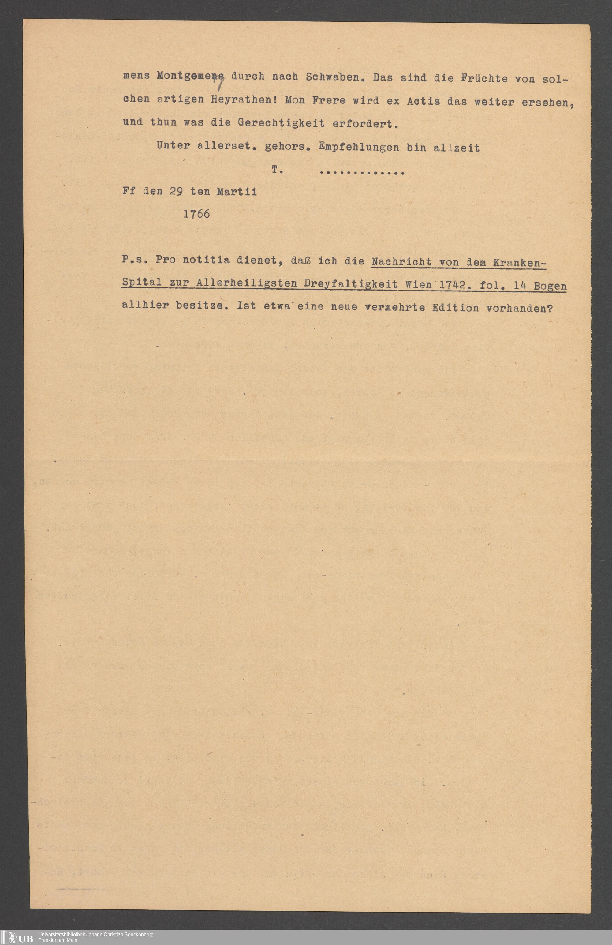 Na 31 Nachlass Johann Christian Senckenberg, 357 - Briefe Heinrich Christian Senckenbergs