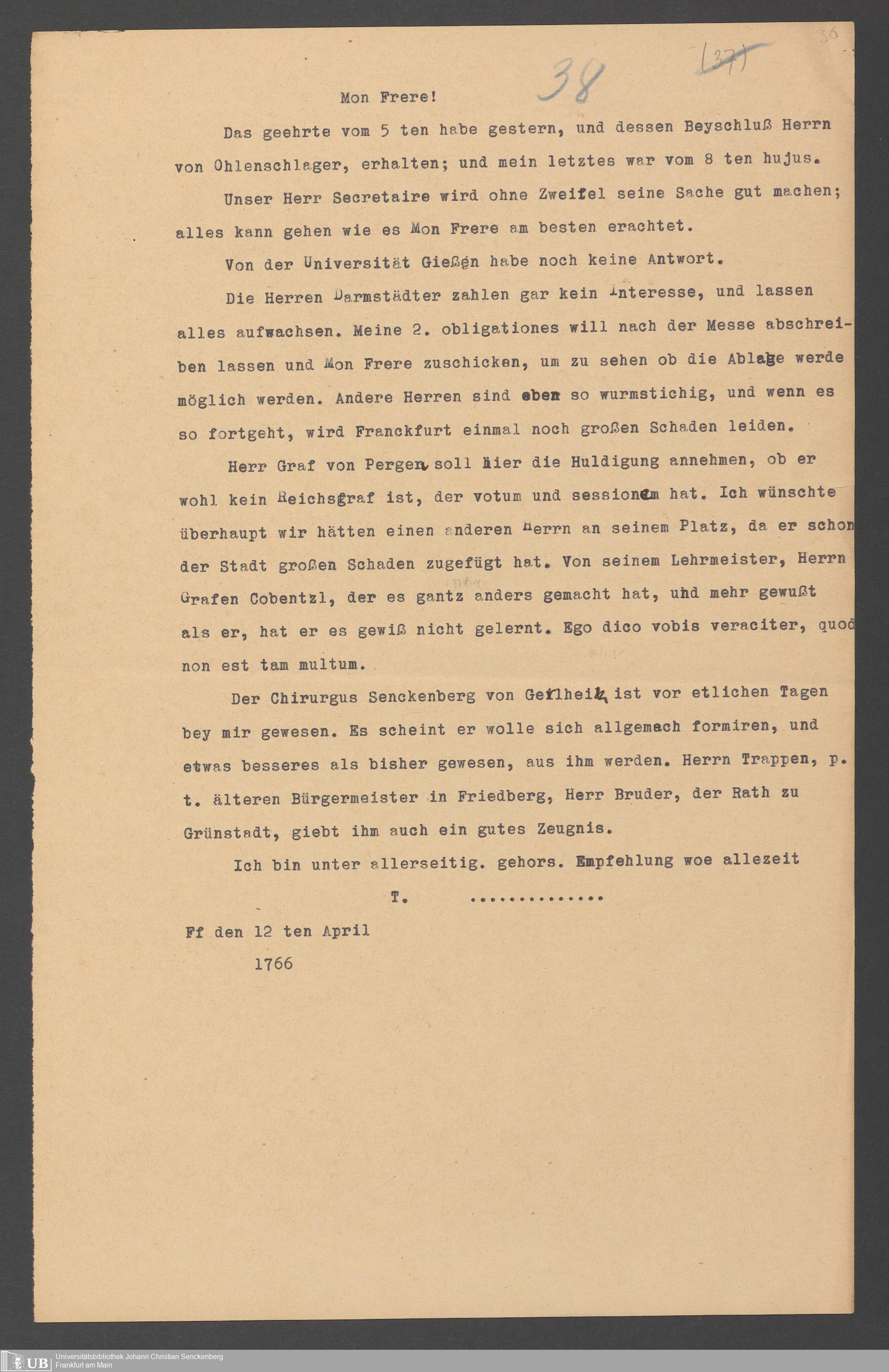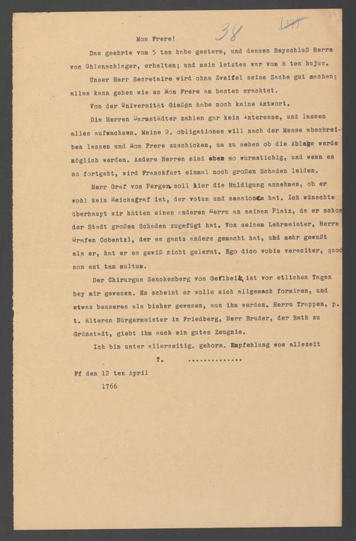 Na 31 Nachlass Johann Christian Senckenberg, 357 - Briefe Heinrich Christian Senckenbergs