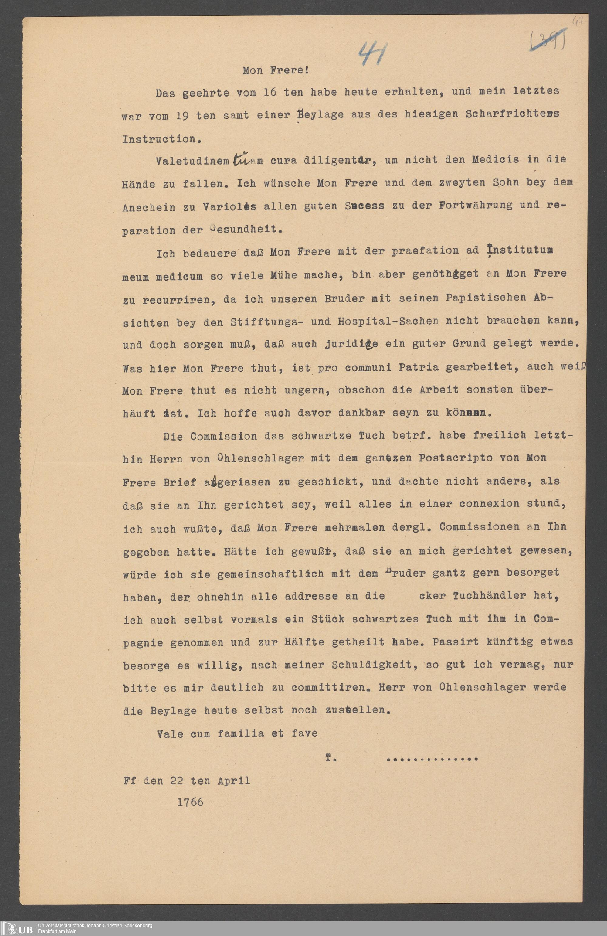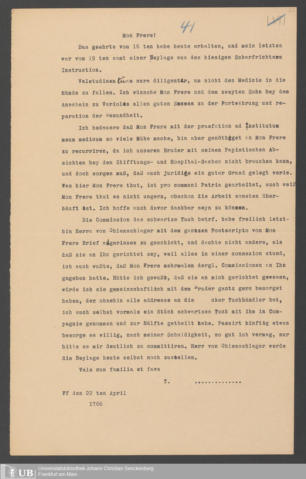 Na 31 Nachlass Johann Christian Senckenberg, 357 - Briefe Heinrich Christian Senckenbergs