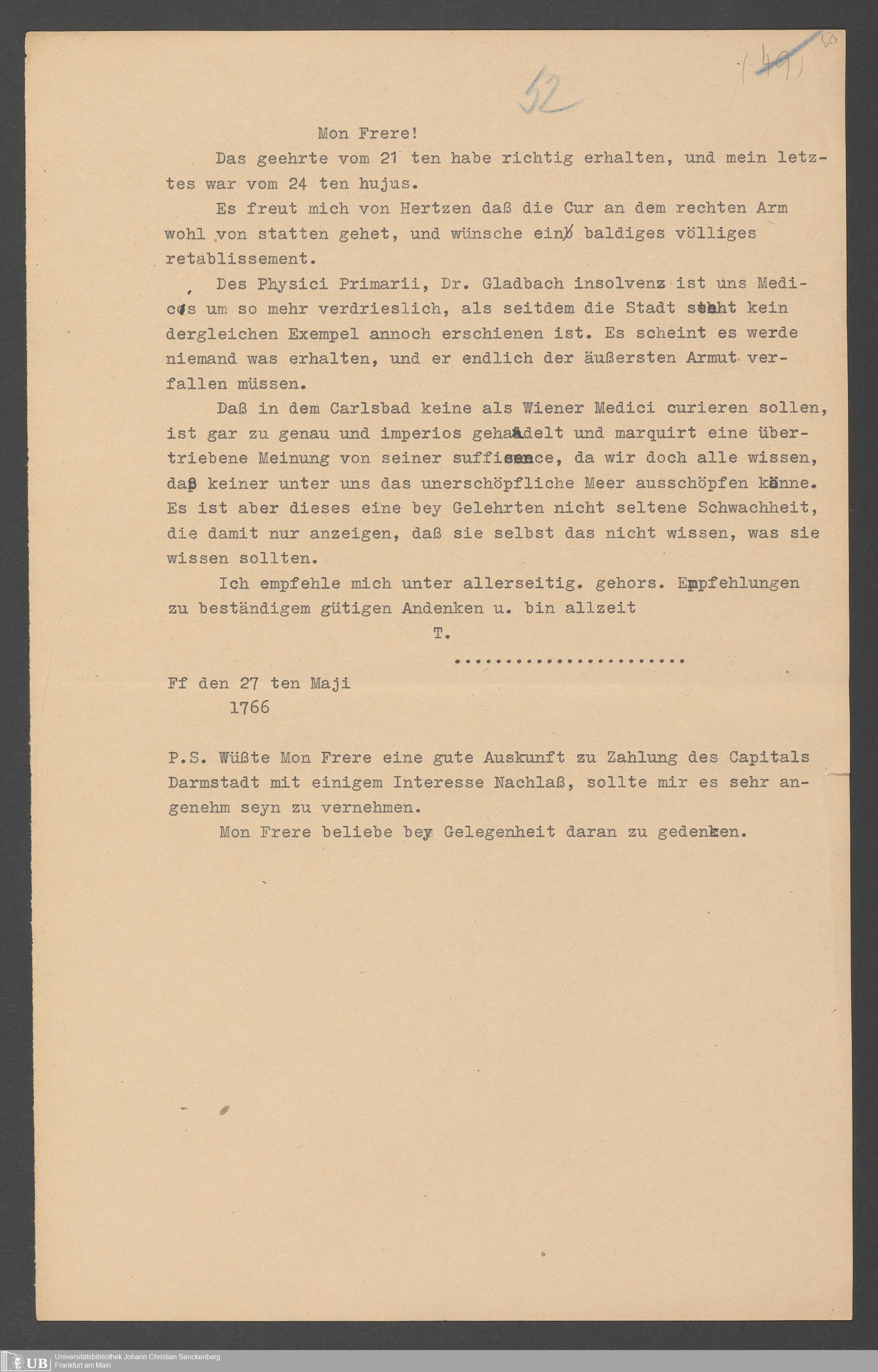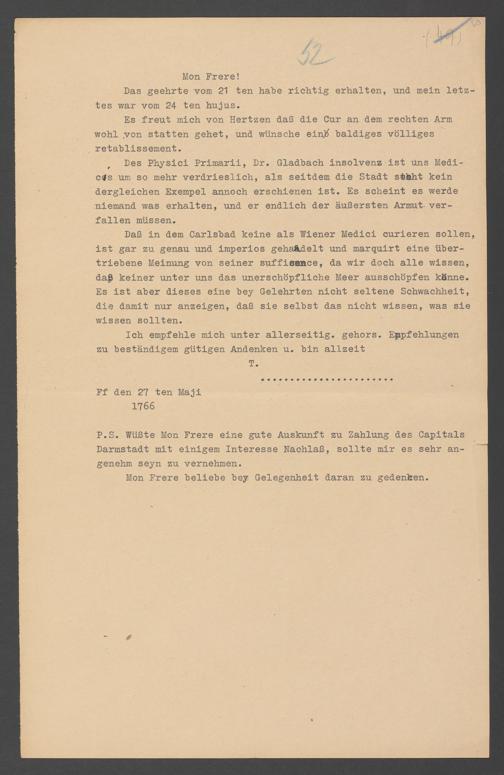 Na 31 Nachlass Johann Christian Senckenberg, 357 - Briefe Heinrich Christian Senckenbergs