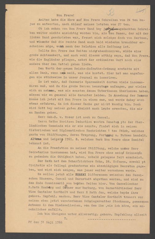 Na 31 Nachlass Johann Christian Senckenberg, 357 - Briefe Heinrich Christian Senckenbergs