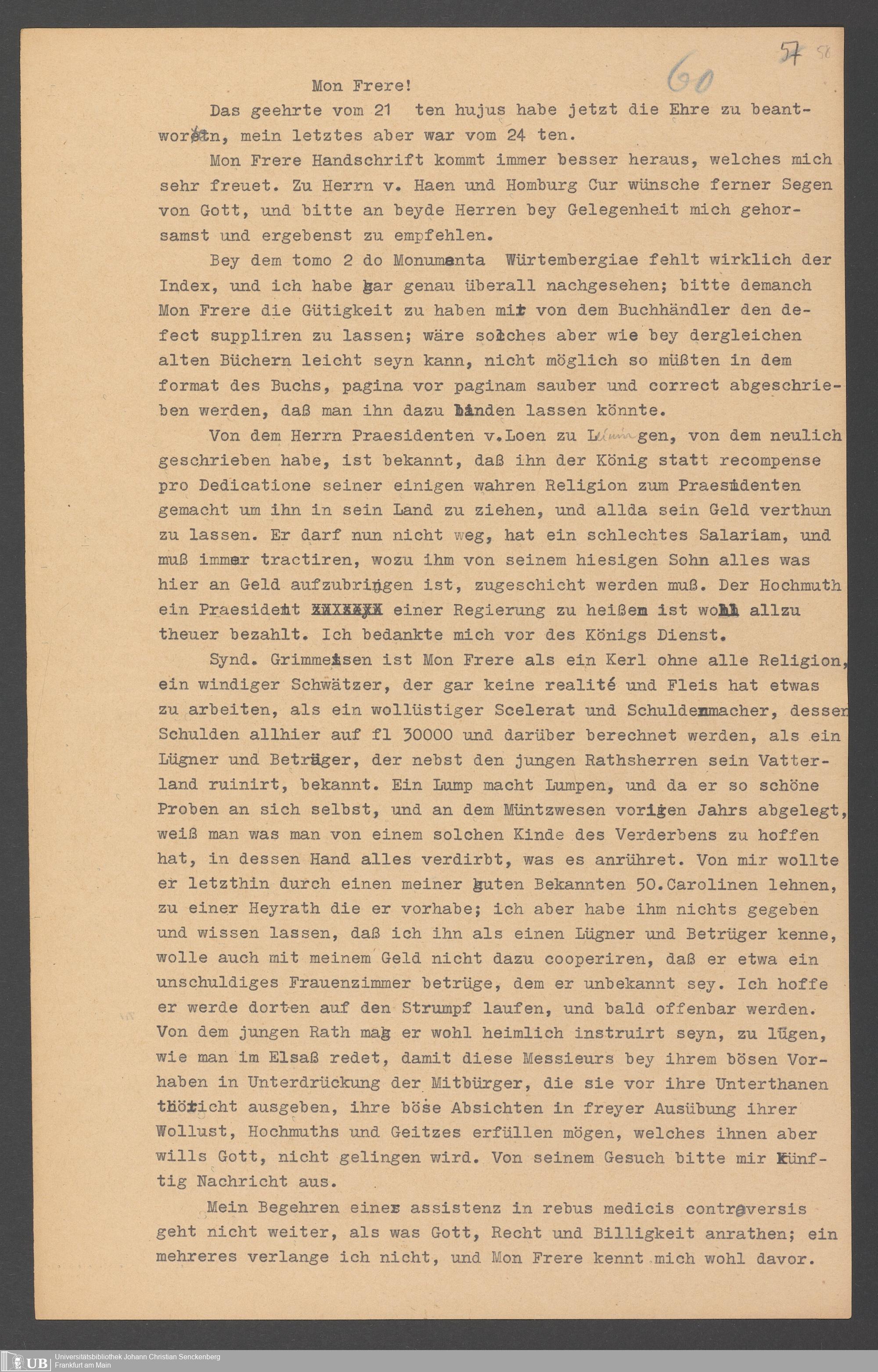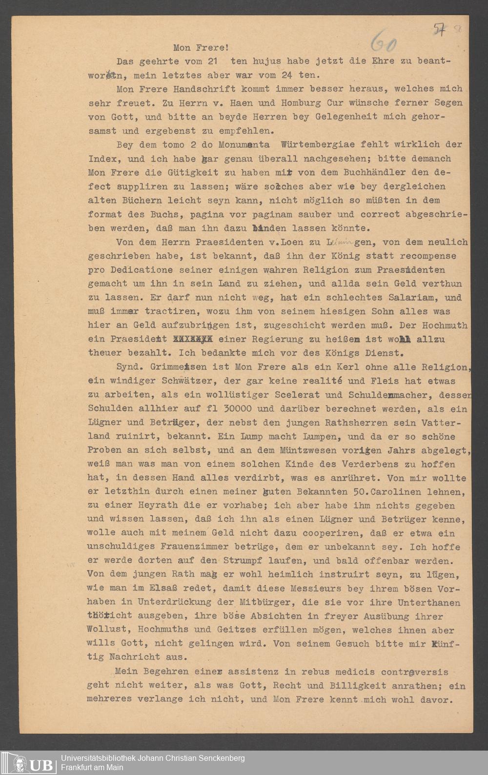 Na 31 Nachlass Johann Christian Senckenberg, 357 - Briefe Heinrich Christian Senckenbergs
