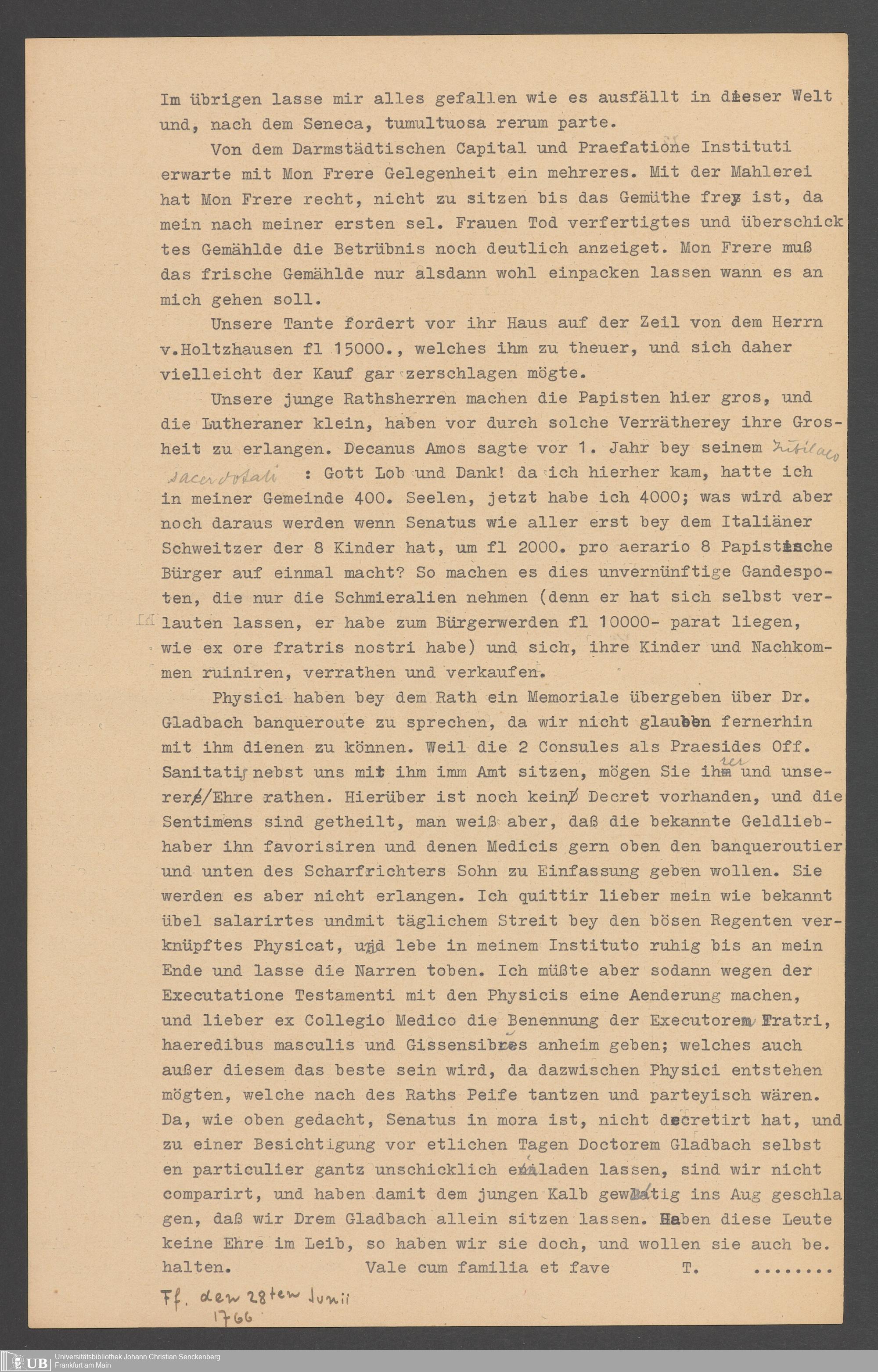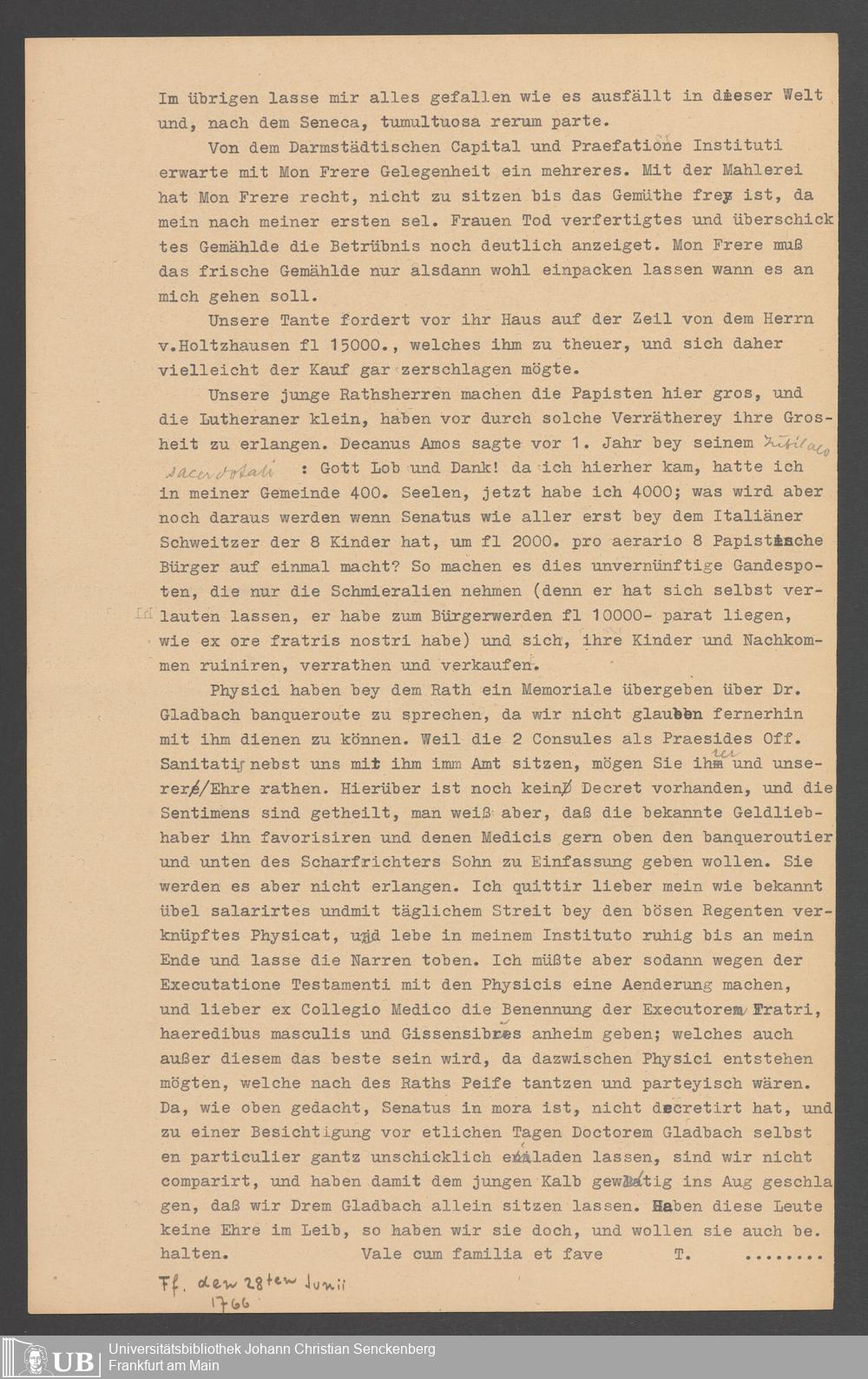 Na 31 Nachlass Johann Christian Senckenberg, 357 - Briefe Heinrich Christian Senckenbergs