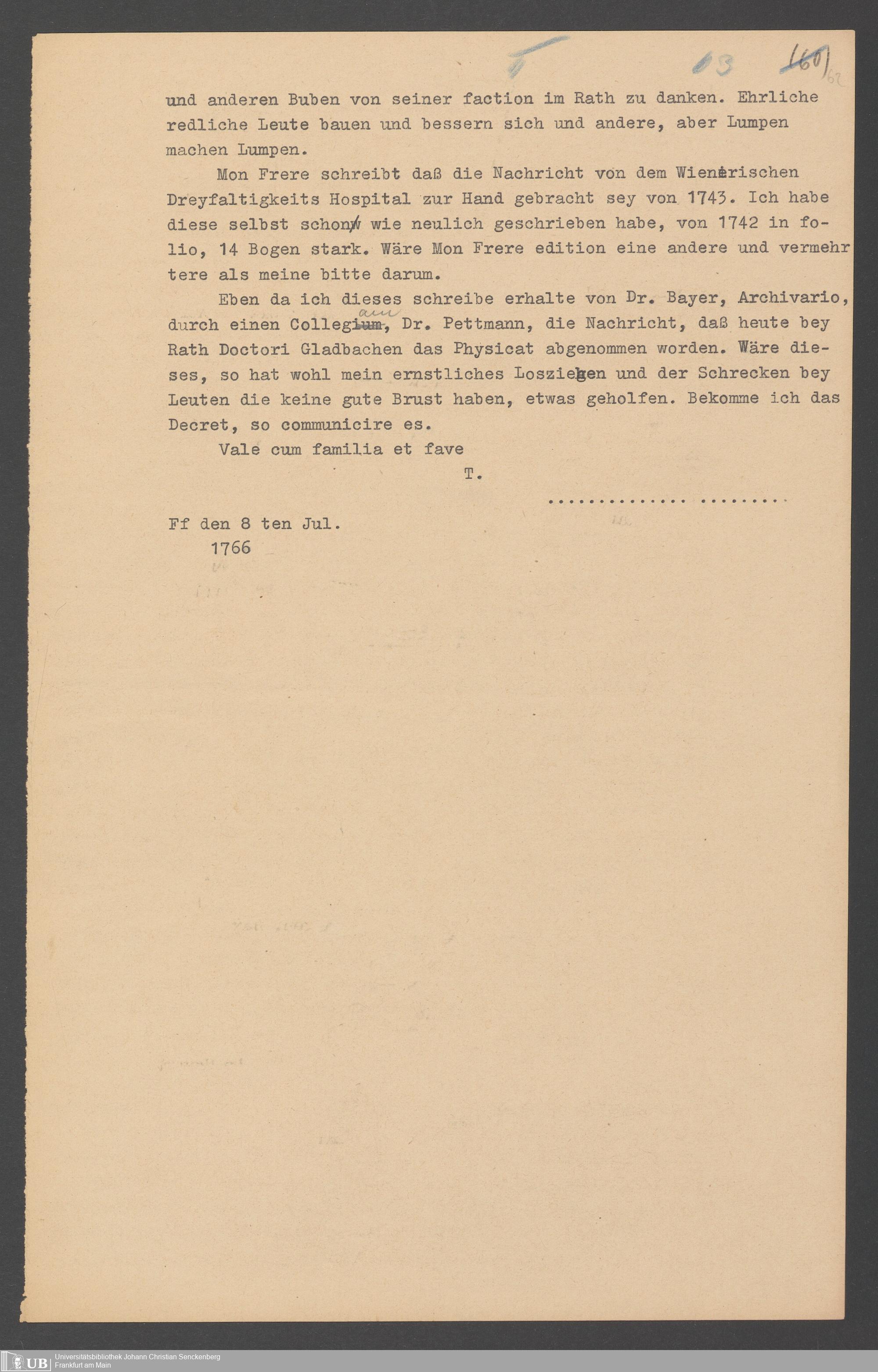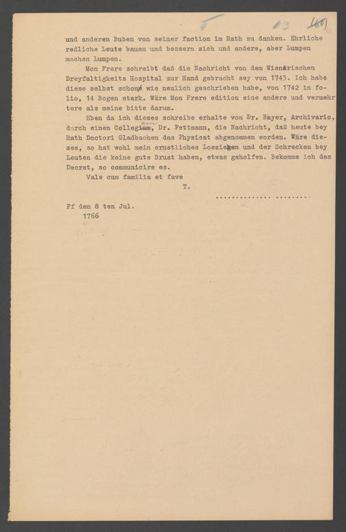 Na 31 Nachlass Johann Christian Senckenberg, 357 - Briefe Heinrich Christian Senckenbergs