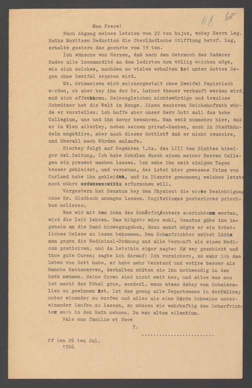 Na 31 Nachlass Johann Christian Senckenberg, 357 - Briefe Heinrich Christian Senckenbergs