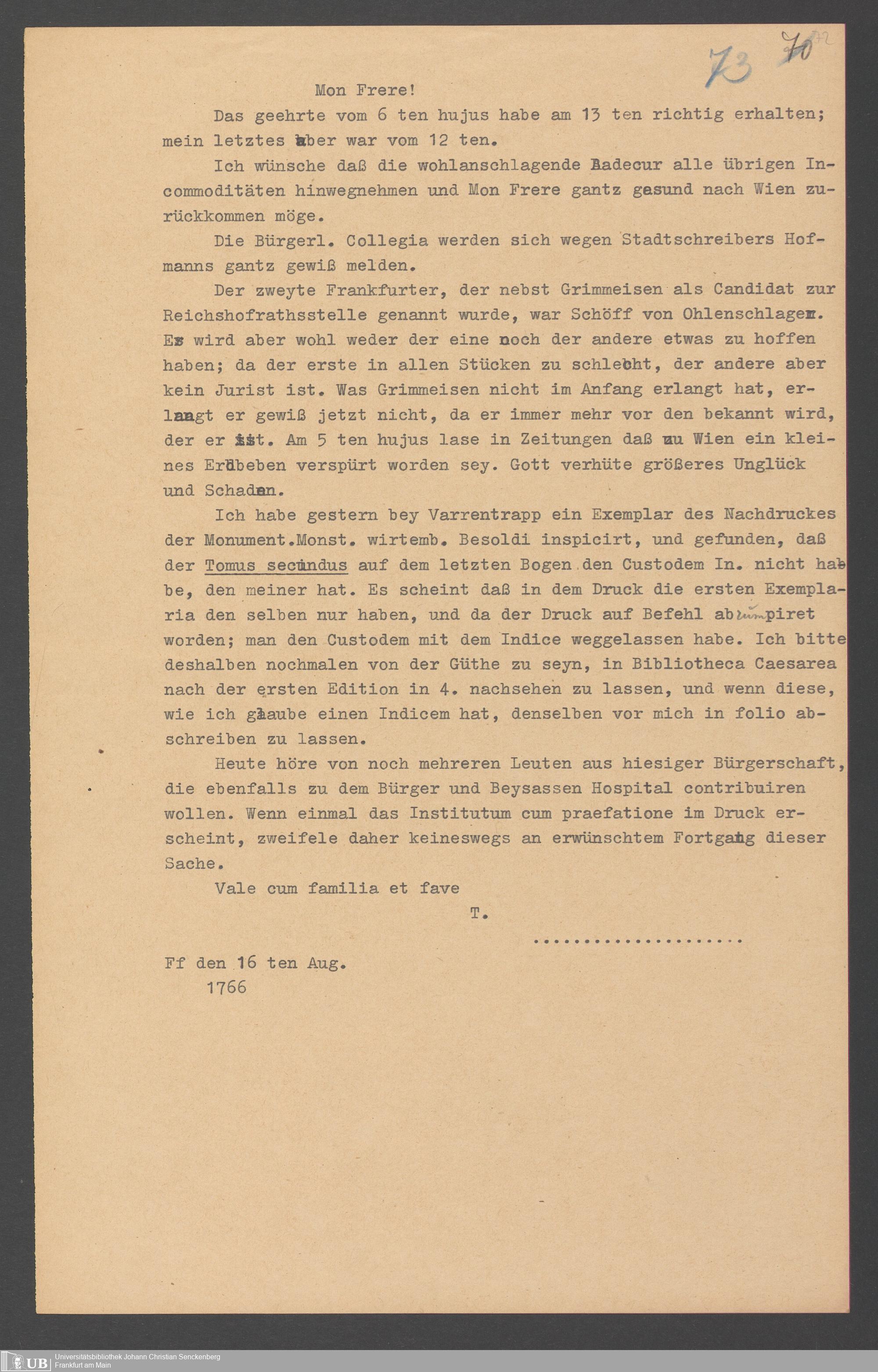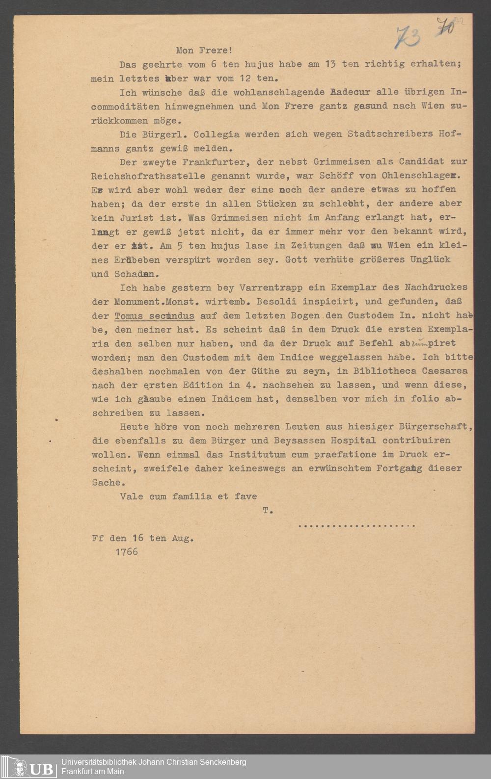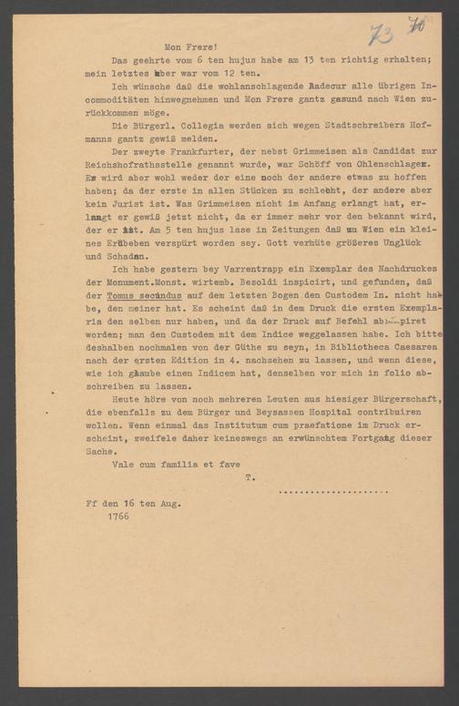 Na 31 Nachlass Johann Christian Senckenberg, 357 - Briefe Heinrich Christian Senckenbergs