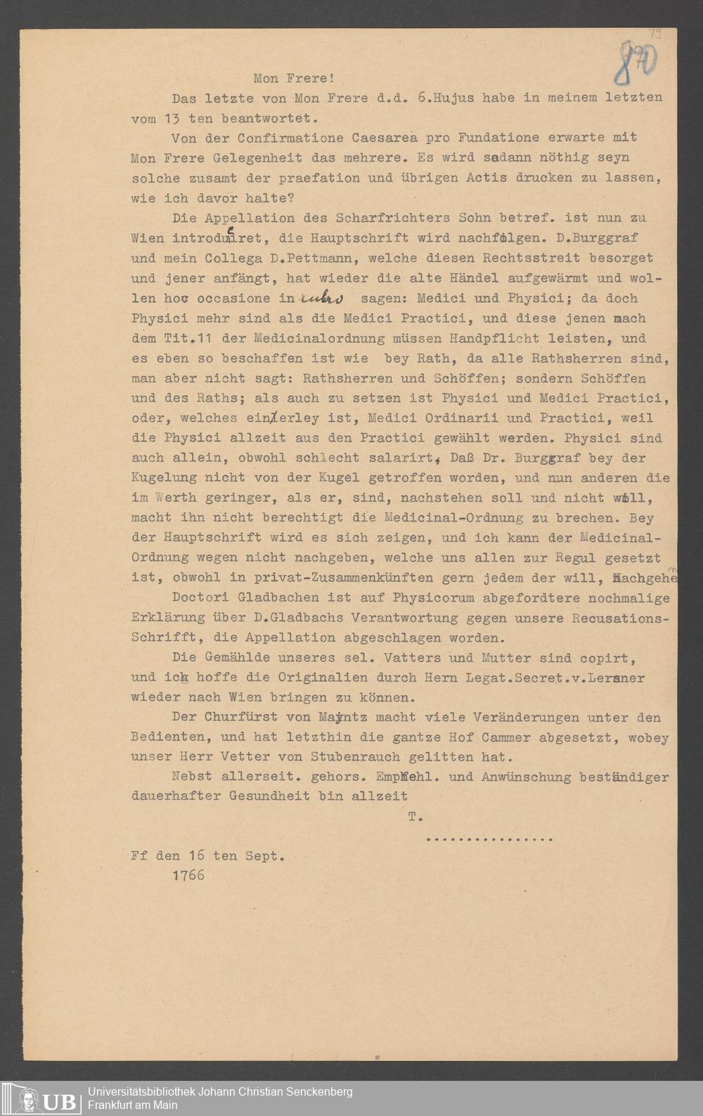Na 31 Nachlass Johann Christian Senckenberg, 357 - Briefe Heinrich Christian Senckenbergs