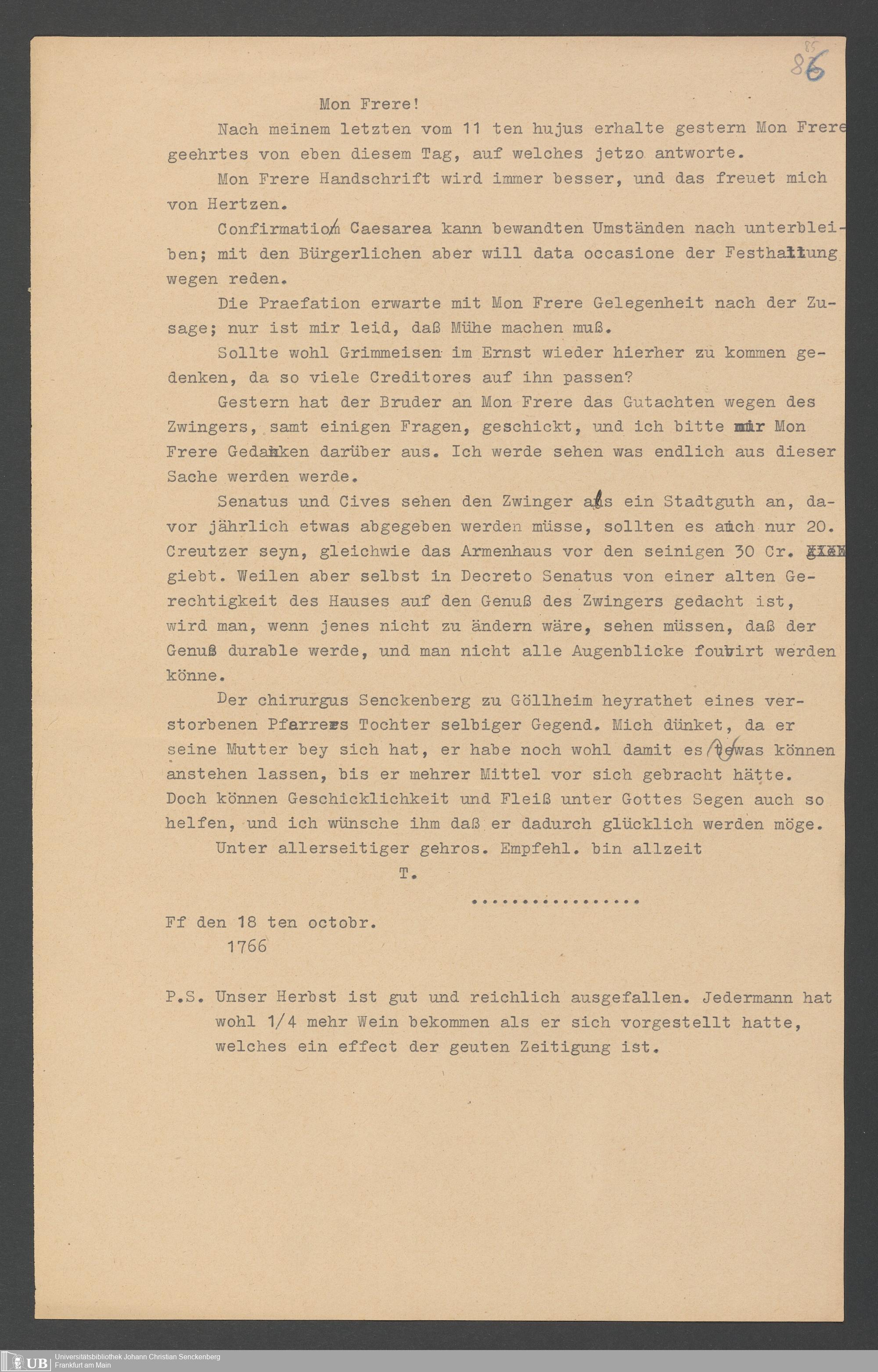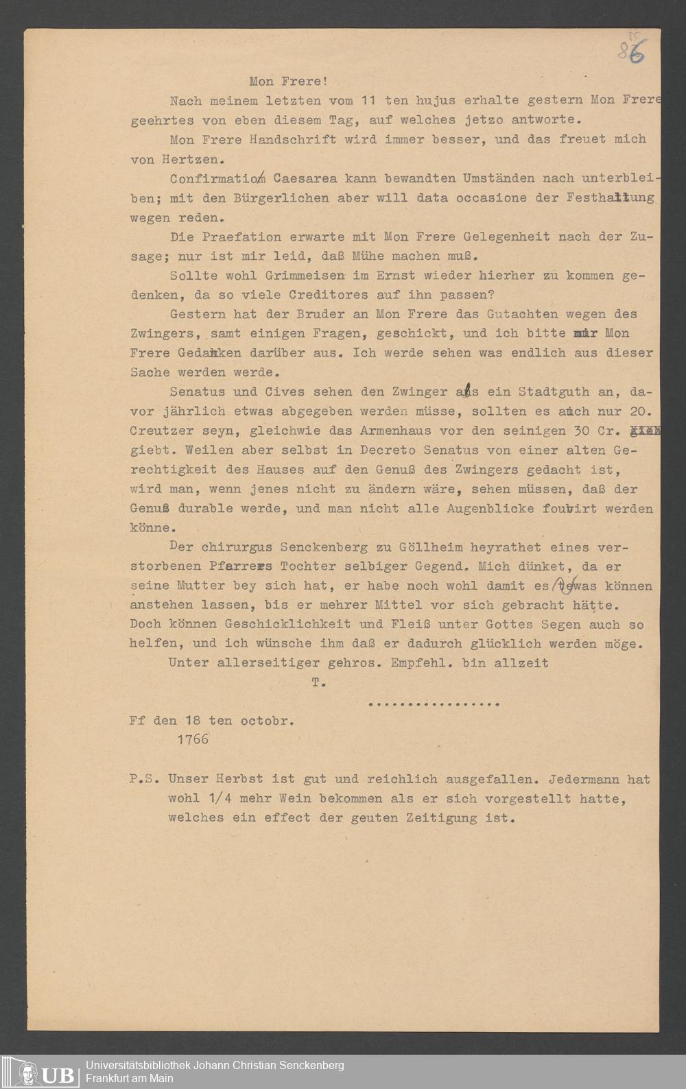 Na 31 Nachlass Johann Christian Senckenberg, 357 - Briefe Heinrich Christian Senckenbergs