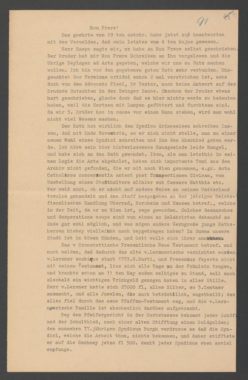 Na 31 Nachlass Johann Christian Senckenberg, 357 - Briefe Heinrich Christian Senckenbergs