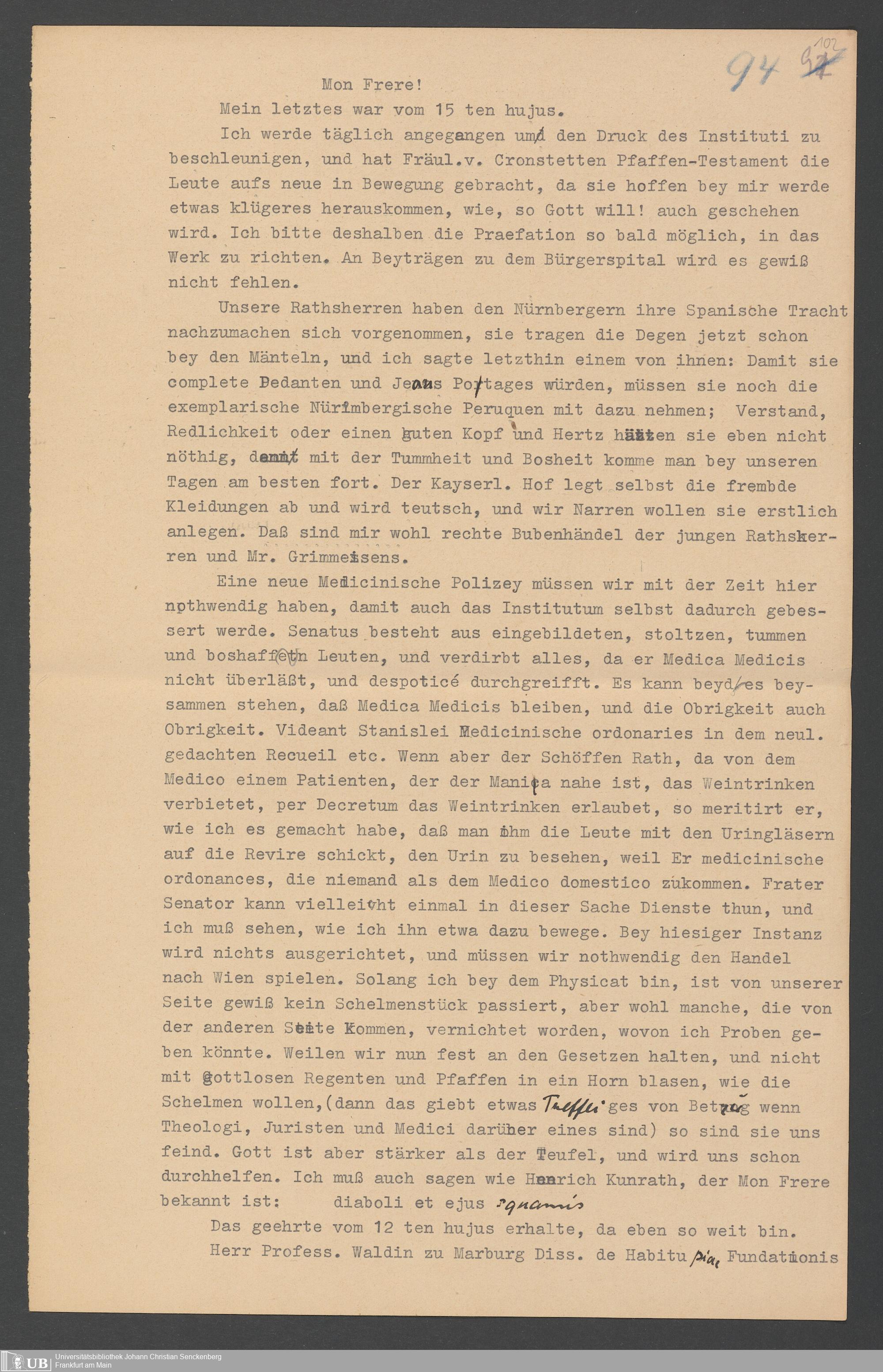 Na 31 Nachlass Johann Christian Senckenberg, 357 - Briefe Heinrich Christian Senckenbergs