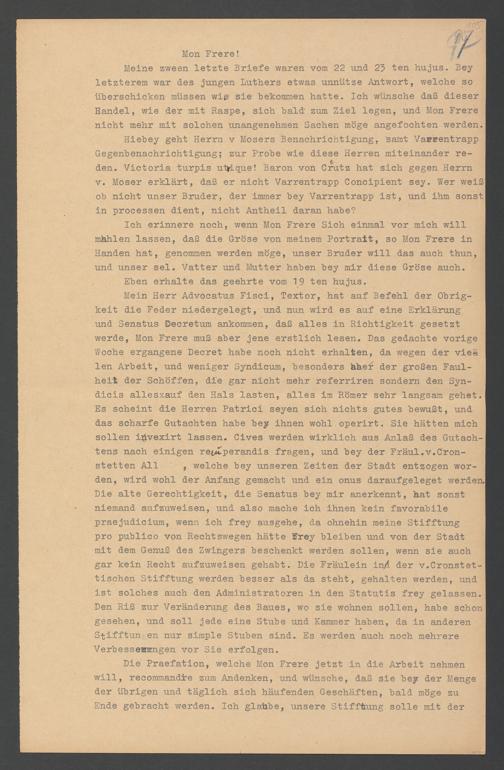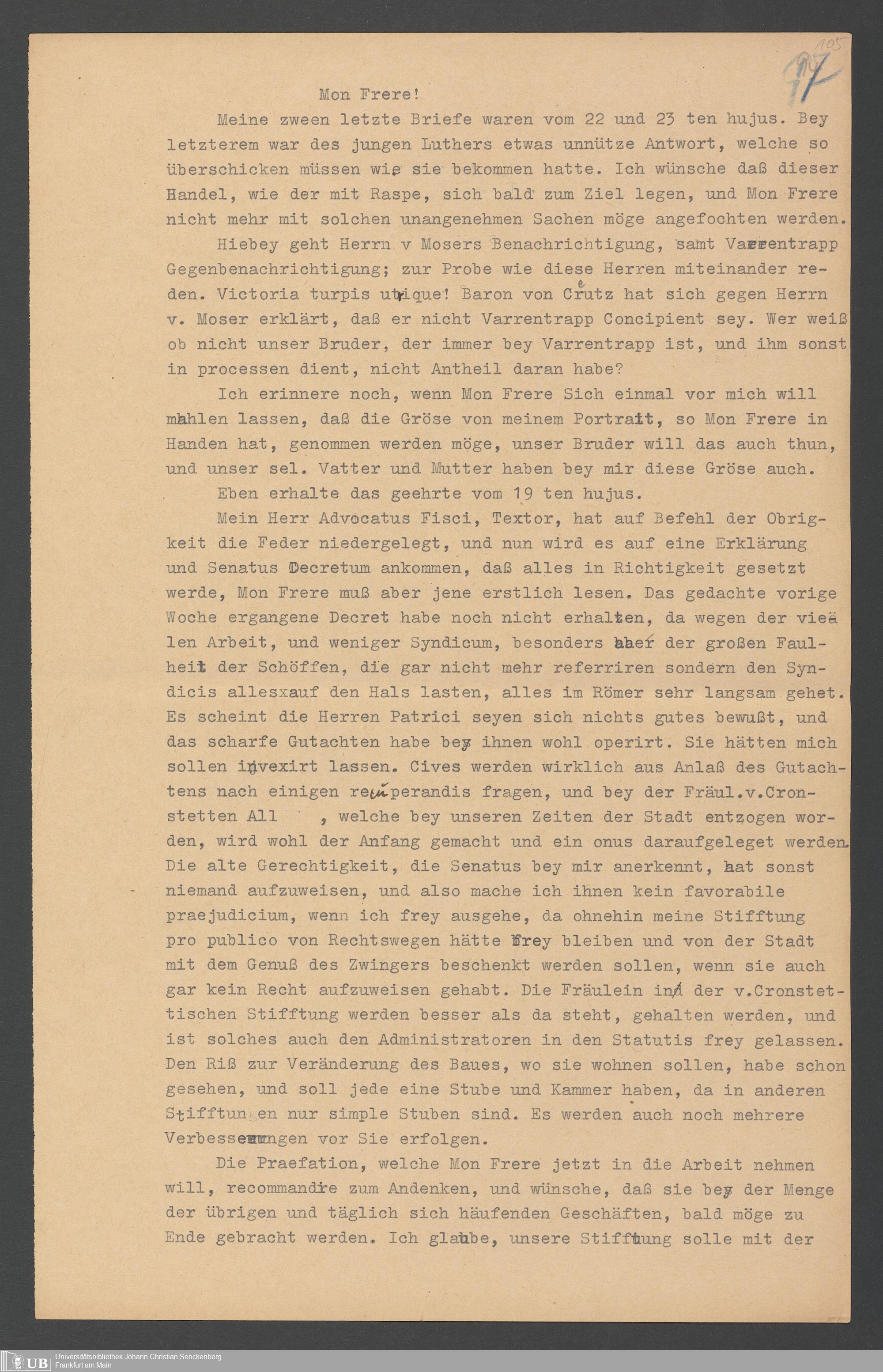 Na 31 Nachlass Johann Christian Senckenberg, 357 - Briefe Heinrich Christian Senckenbergs