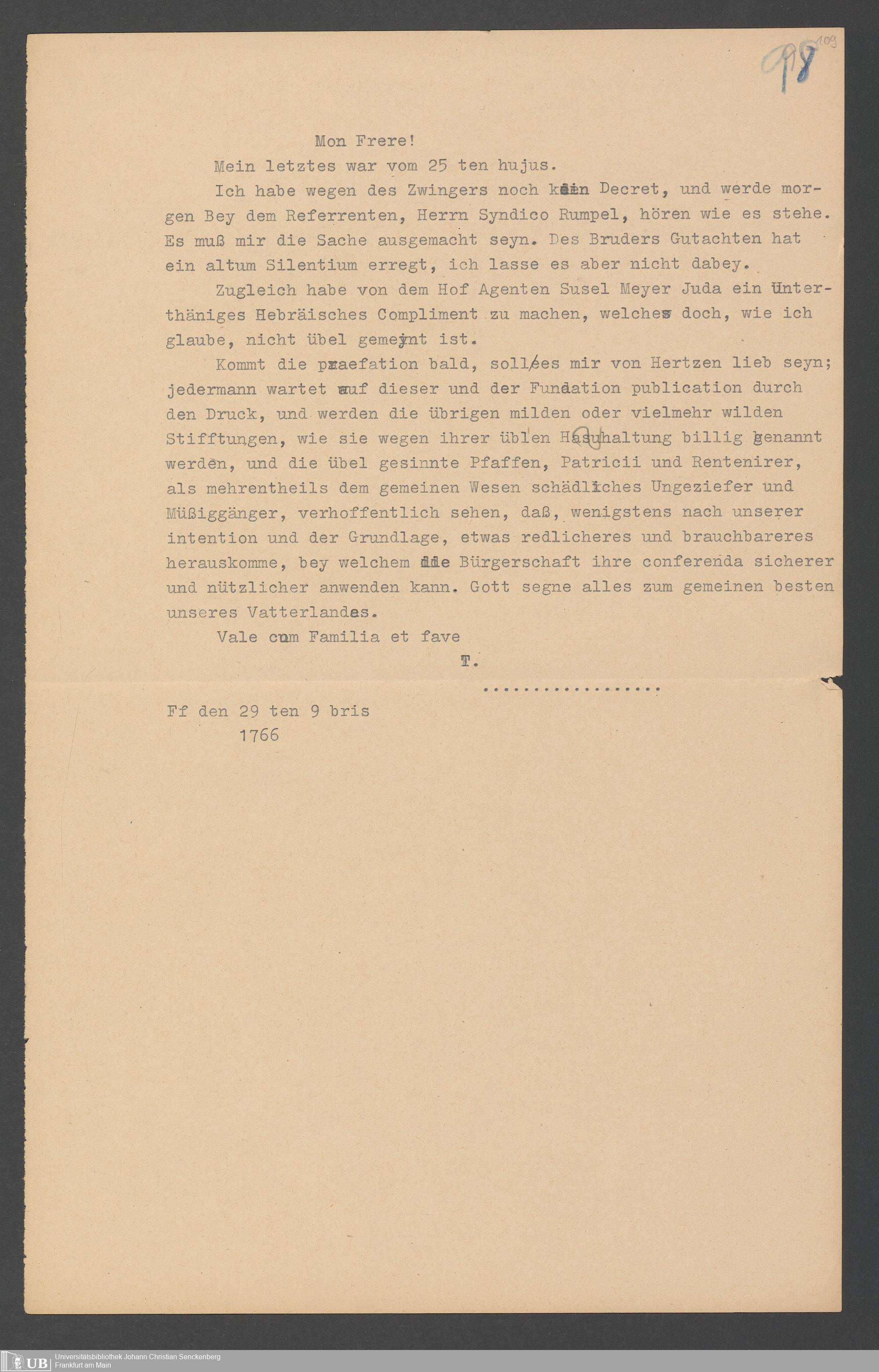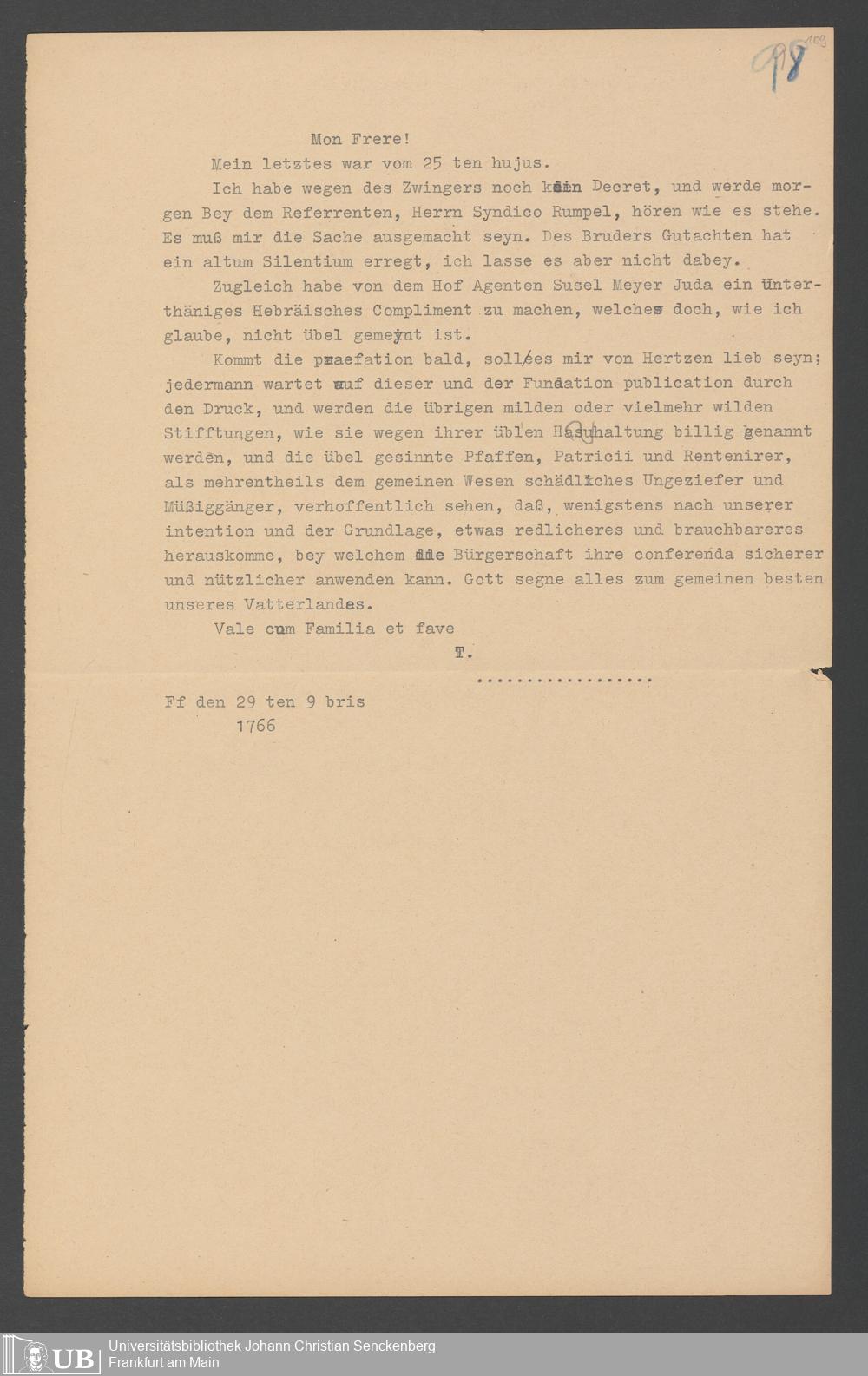 Na 31 Nachlass Johann Christian Senckenberg, 357 - Briefe Heinrich Christian Senckenbergs