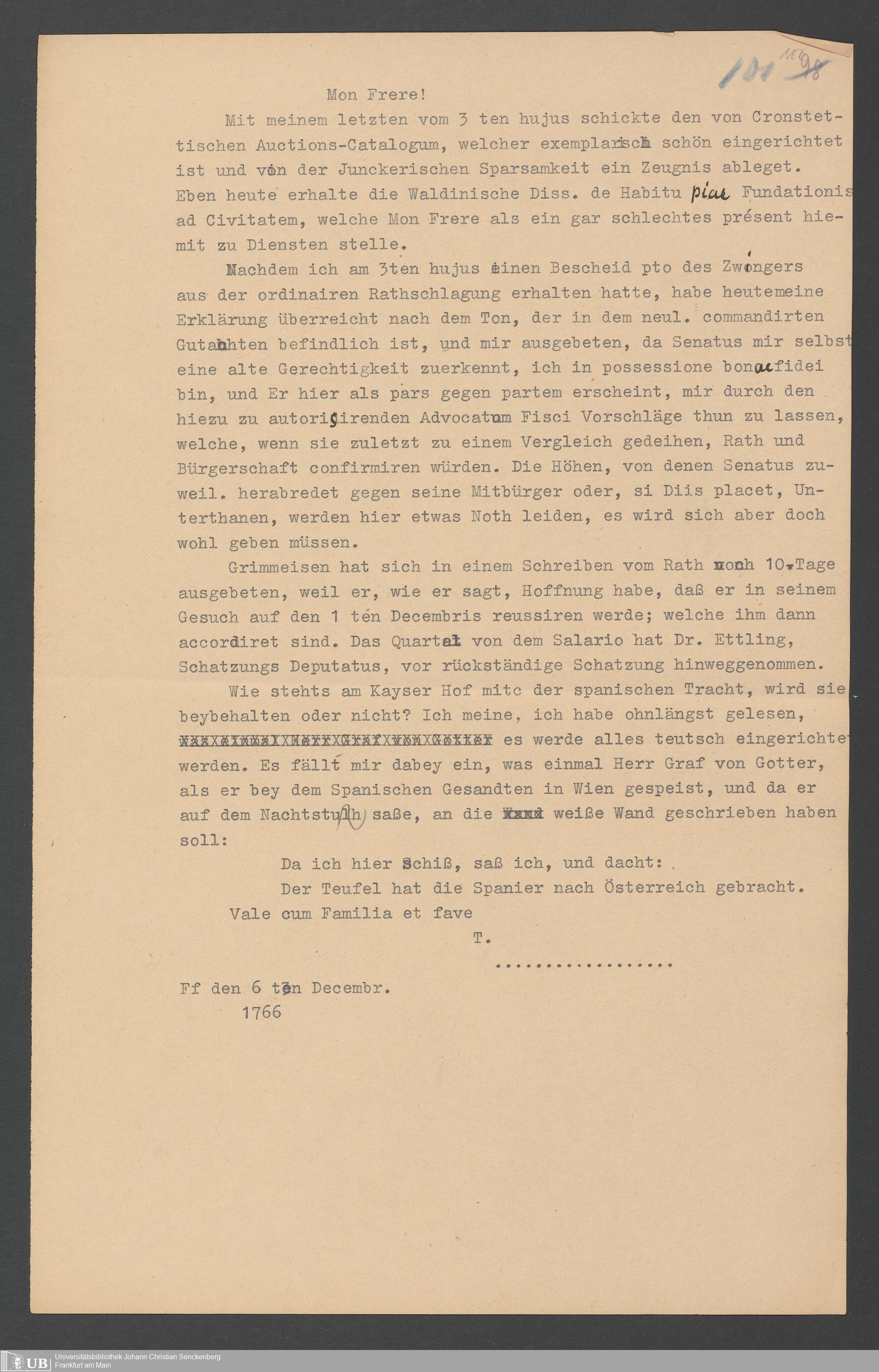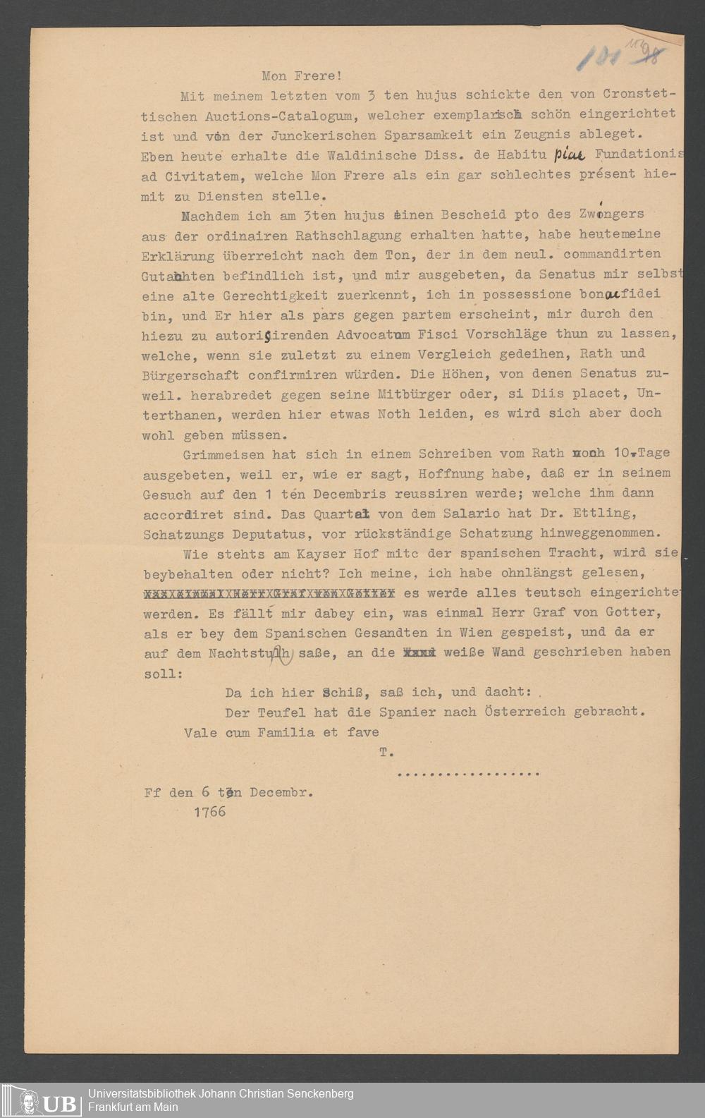 Na 31 Nachlass Johann Christian Senckenberg, 357 - Briefe Heinrich Christian Senckenbergs