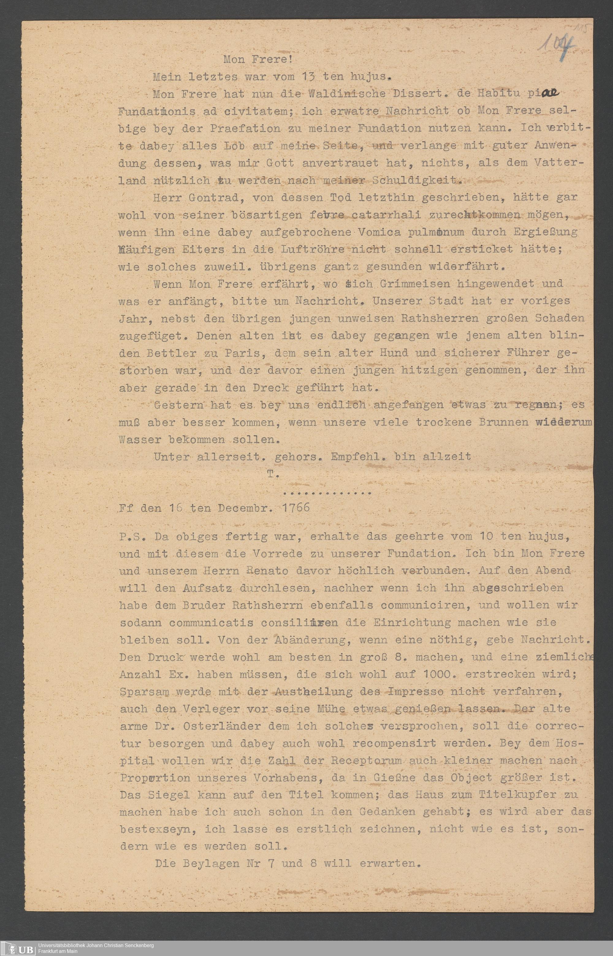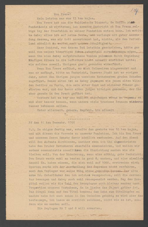 Na 31 Nachlass Johann Christian Senckenberg, 357 - Briefe Heinrich Christian Senckenbergs