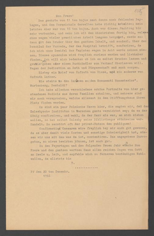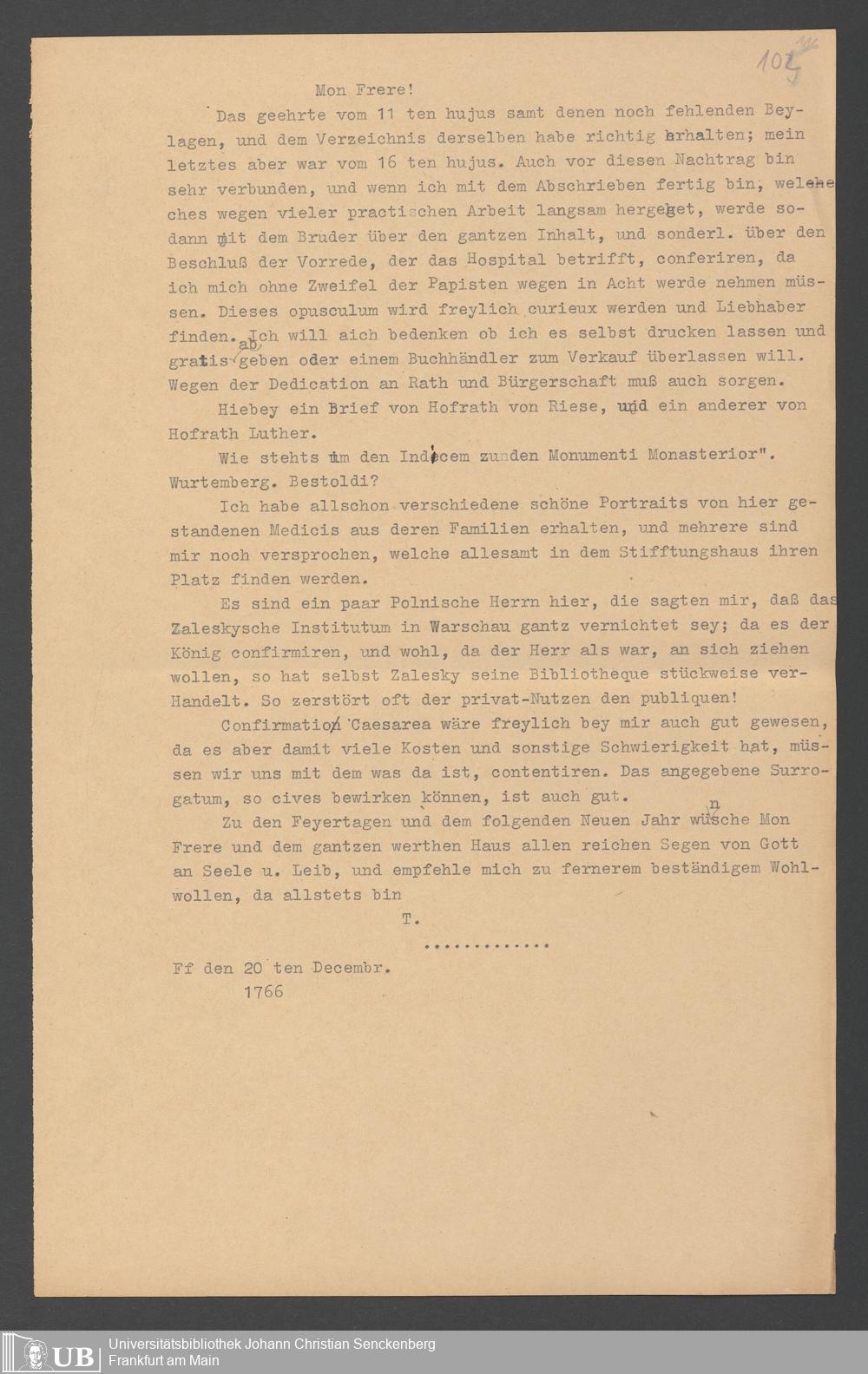 Na 31 Nachlass Johann Christian Senckenberg, 357 - Briefe Heinrich Christian Senckenbergs