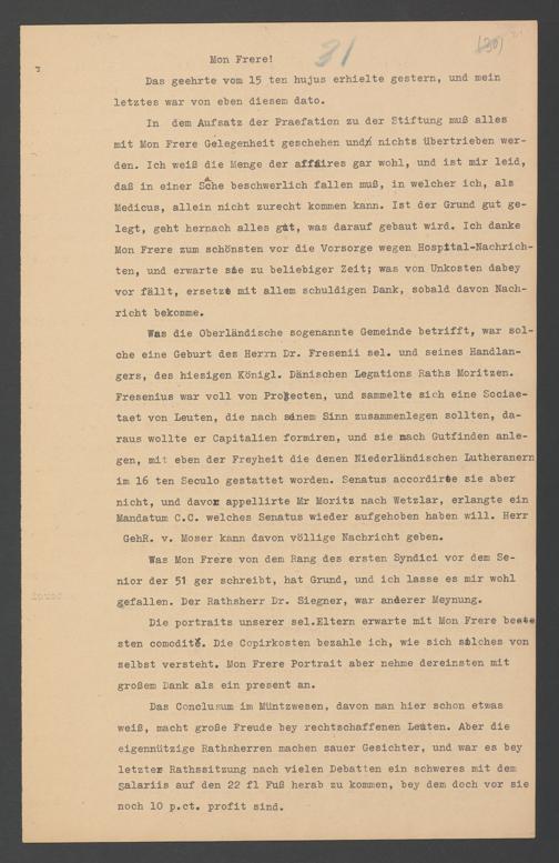 Na 31 Nachlass Johann Christian Senckenberg, 358 - Briefe Heinrich Christian Senckenbergs