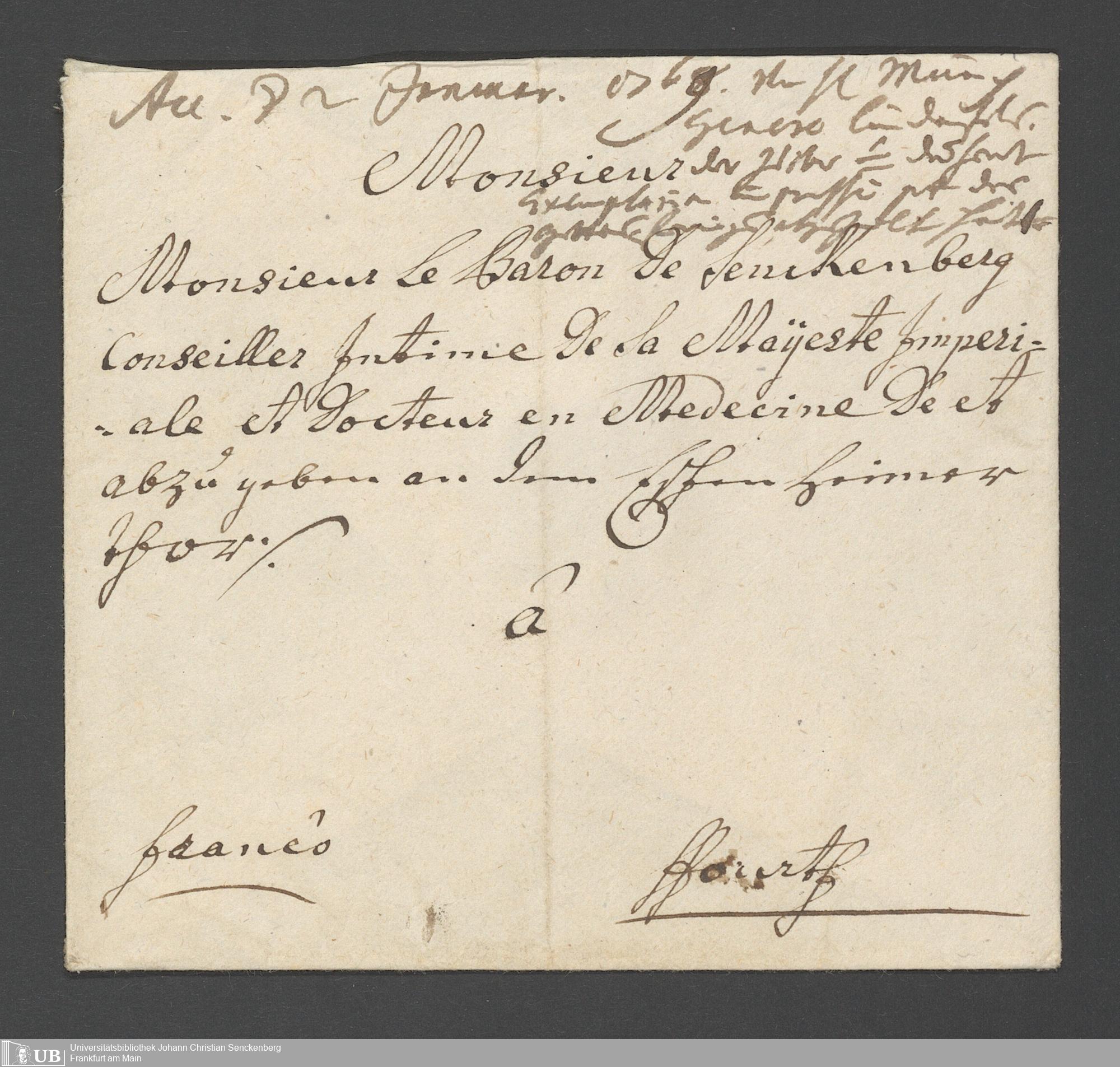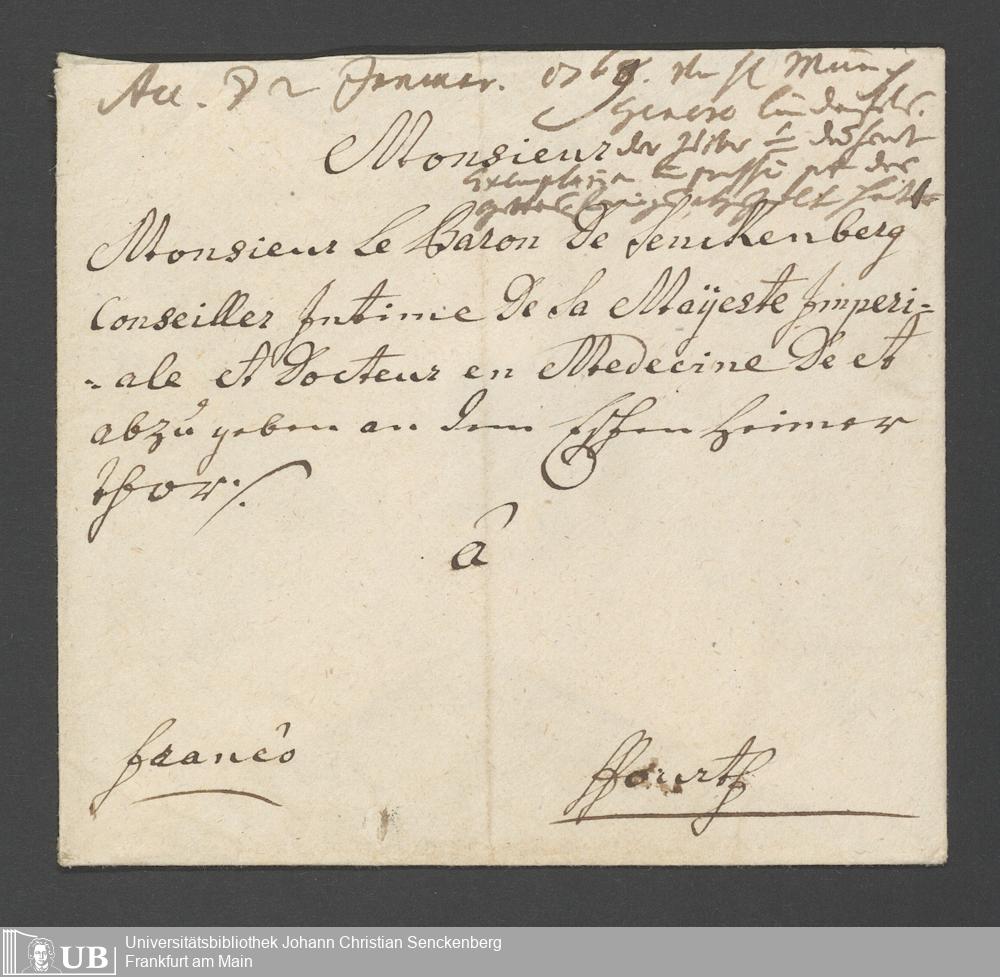 Na 31 Nachlass Johann Christian Senckenberg, 361 - Schreiben des Mainzer Intendenten Foerg