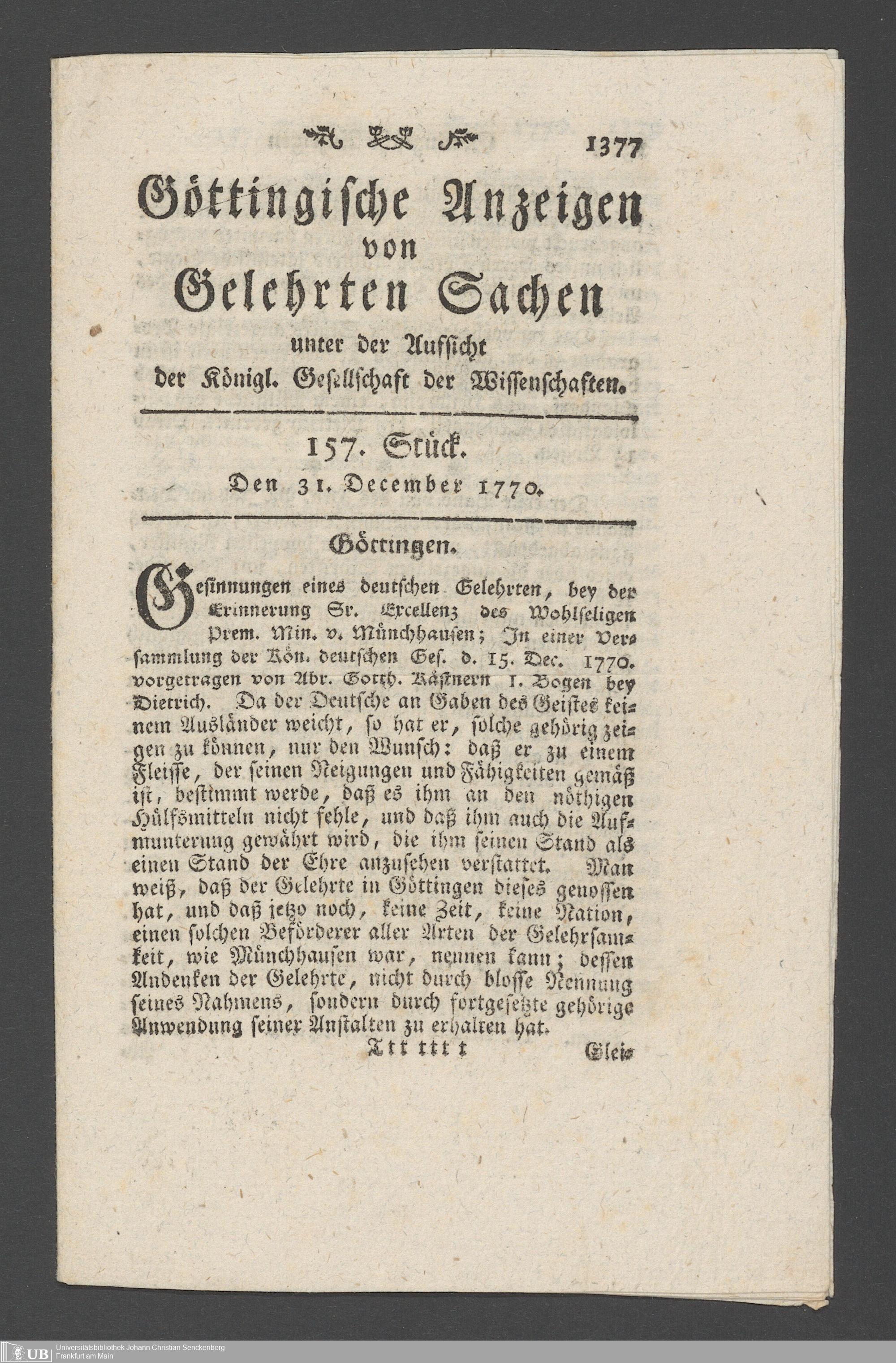 Na 31 Nachlass Johann Christian Senckenberg, 362 - Pressebesprechungen und private Anerkennungsschreiben über die Stiftung