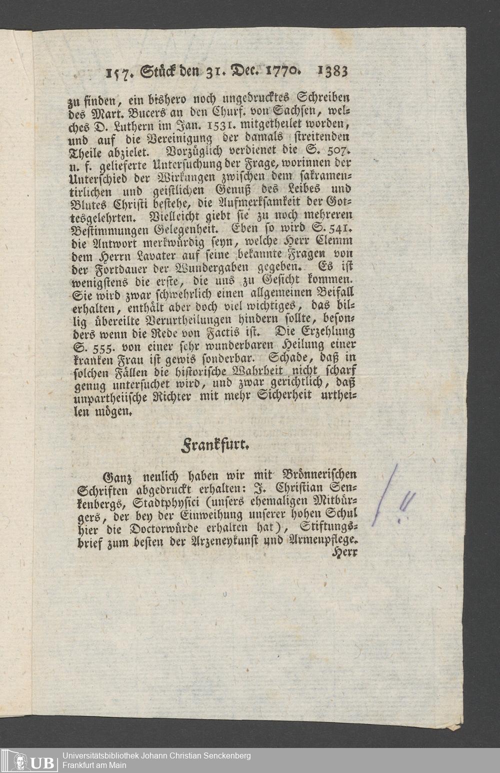 Na 31 Nachlass Johann Christian Senckenberg, 362 - Pressebesprechungen und private Anerkennungsschreiben über die Stiftung