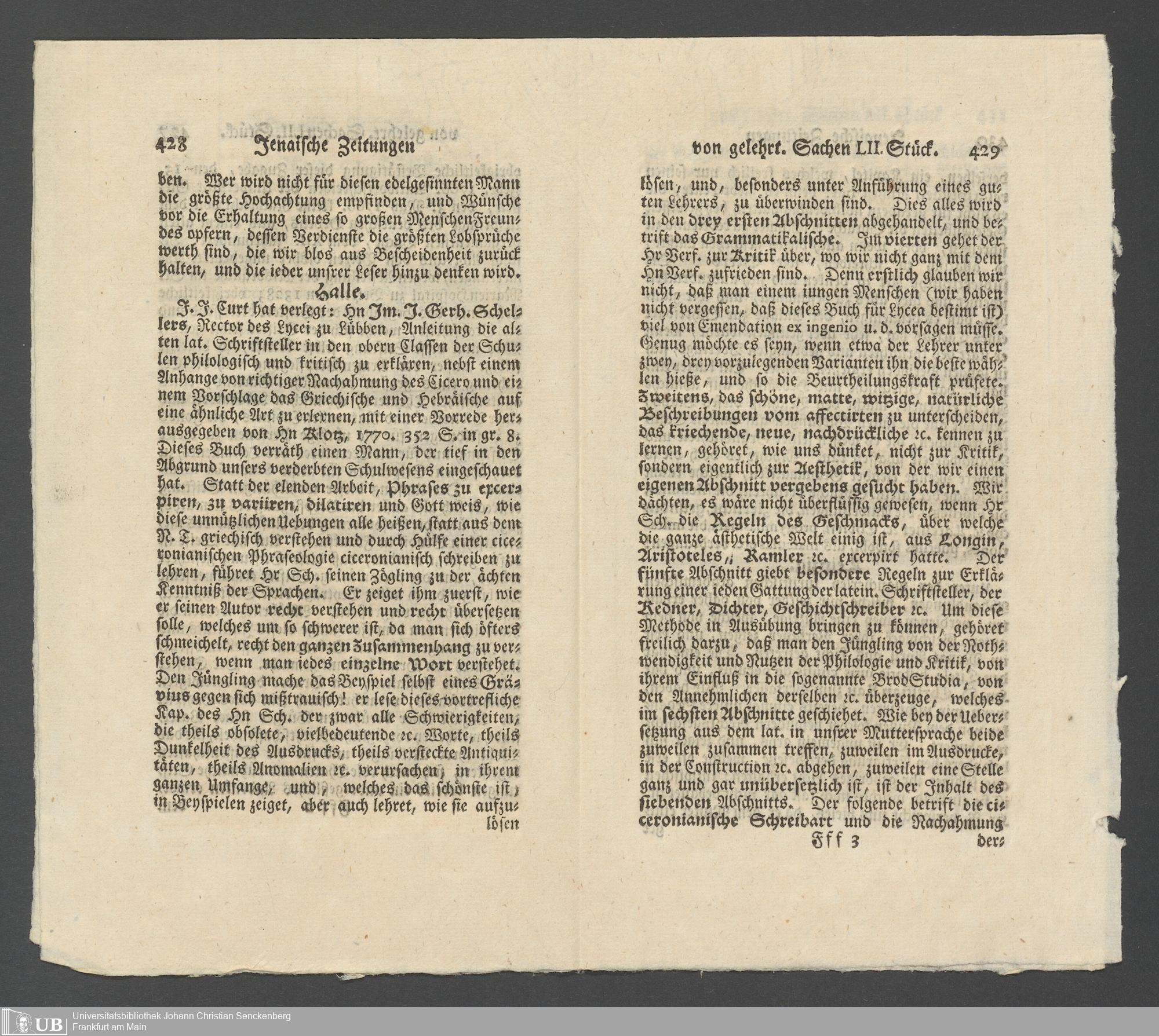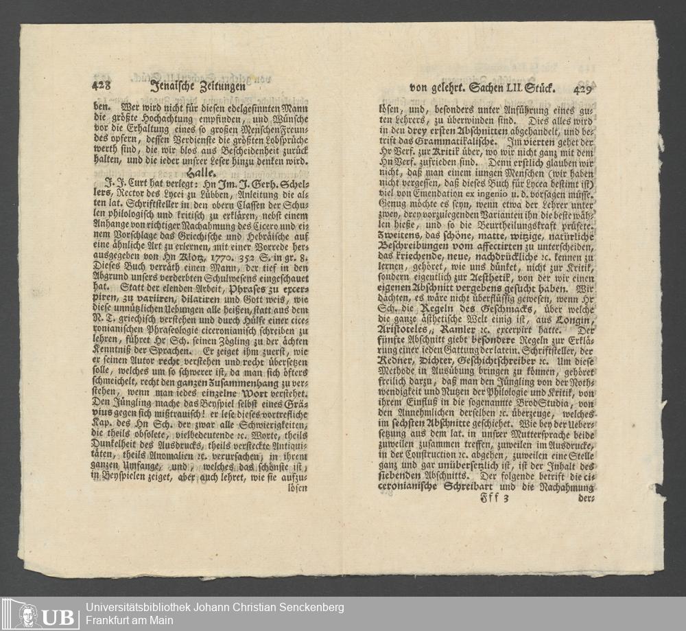 Na 31 Nachlass Johann Christian Senckenberg, 362 - Pressebesprechungen und private Anerkennungsschreiben über die Stiftung