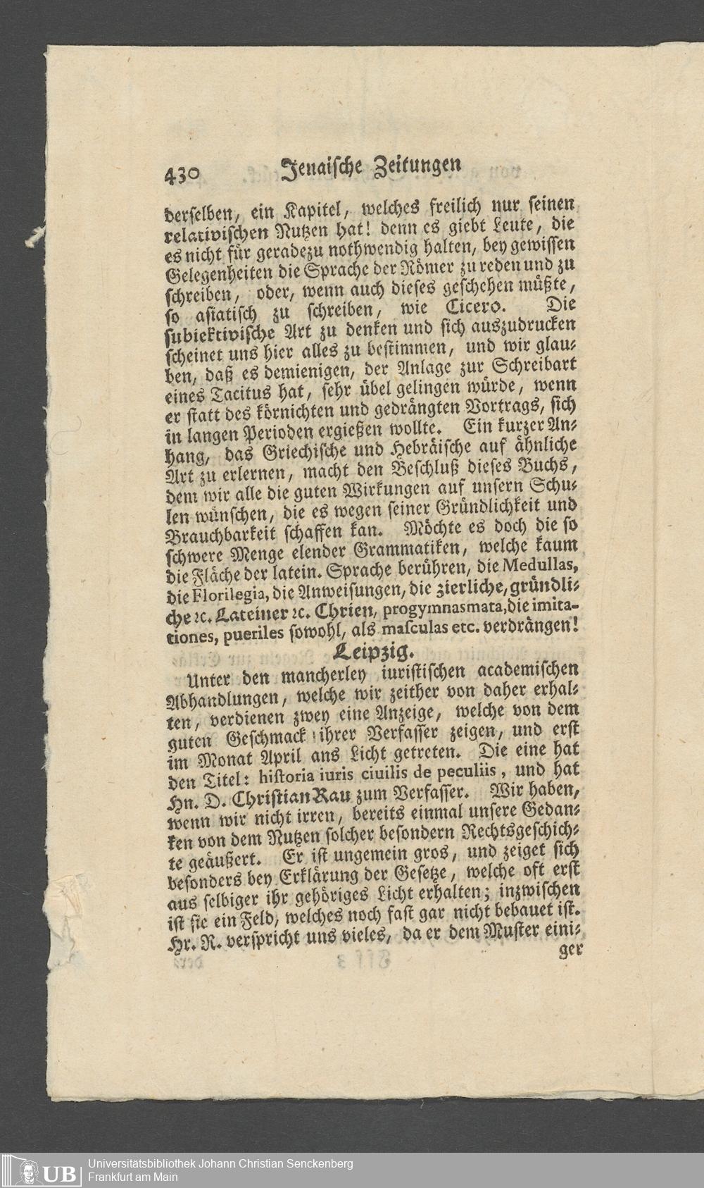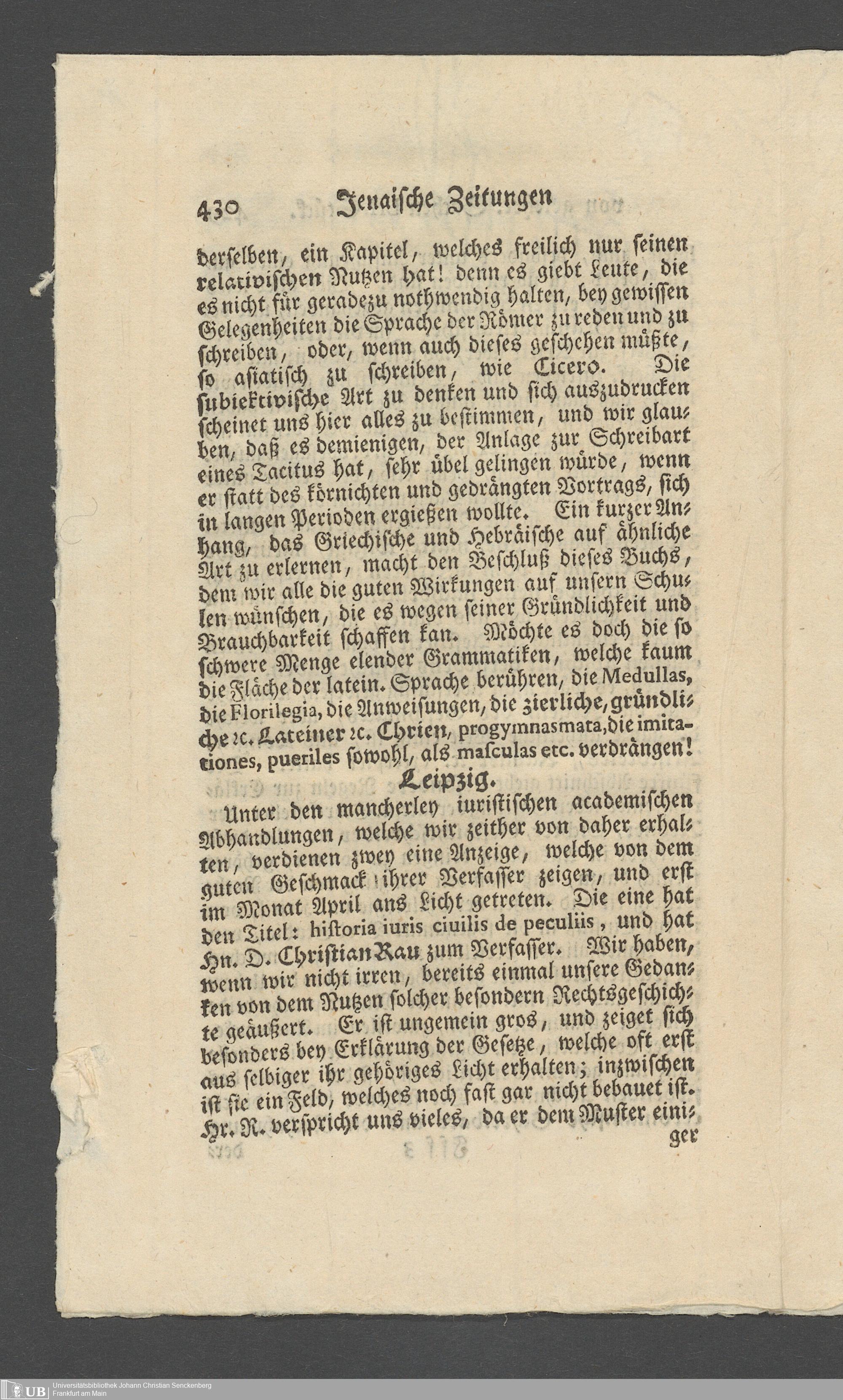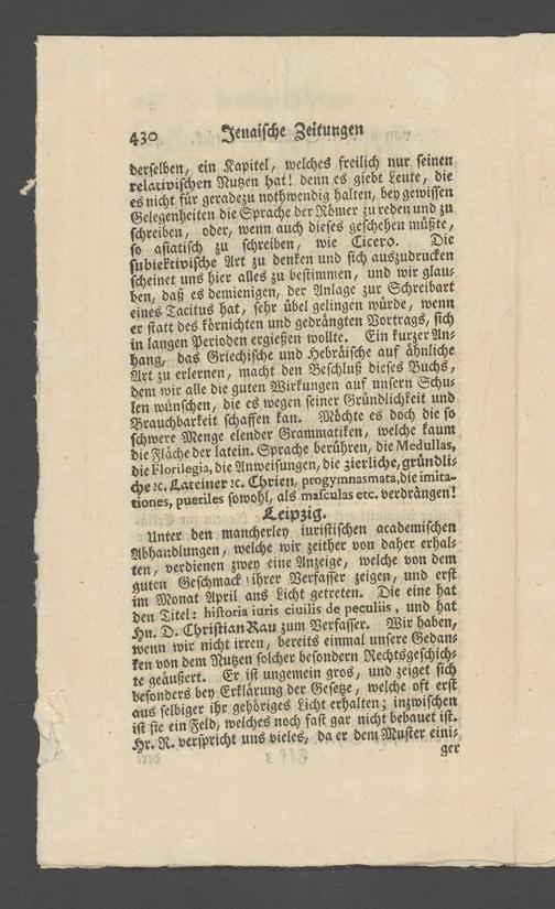 Na 31 Nachlass Johann Christian Senckenberg, 362 - Pressebesprechungen und private Anerkennungsschreiben über die Stiftung