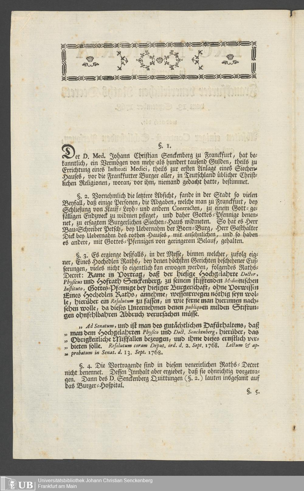 Nachlass Johann Christian Senckenberg