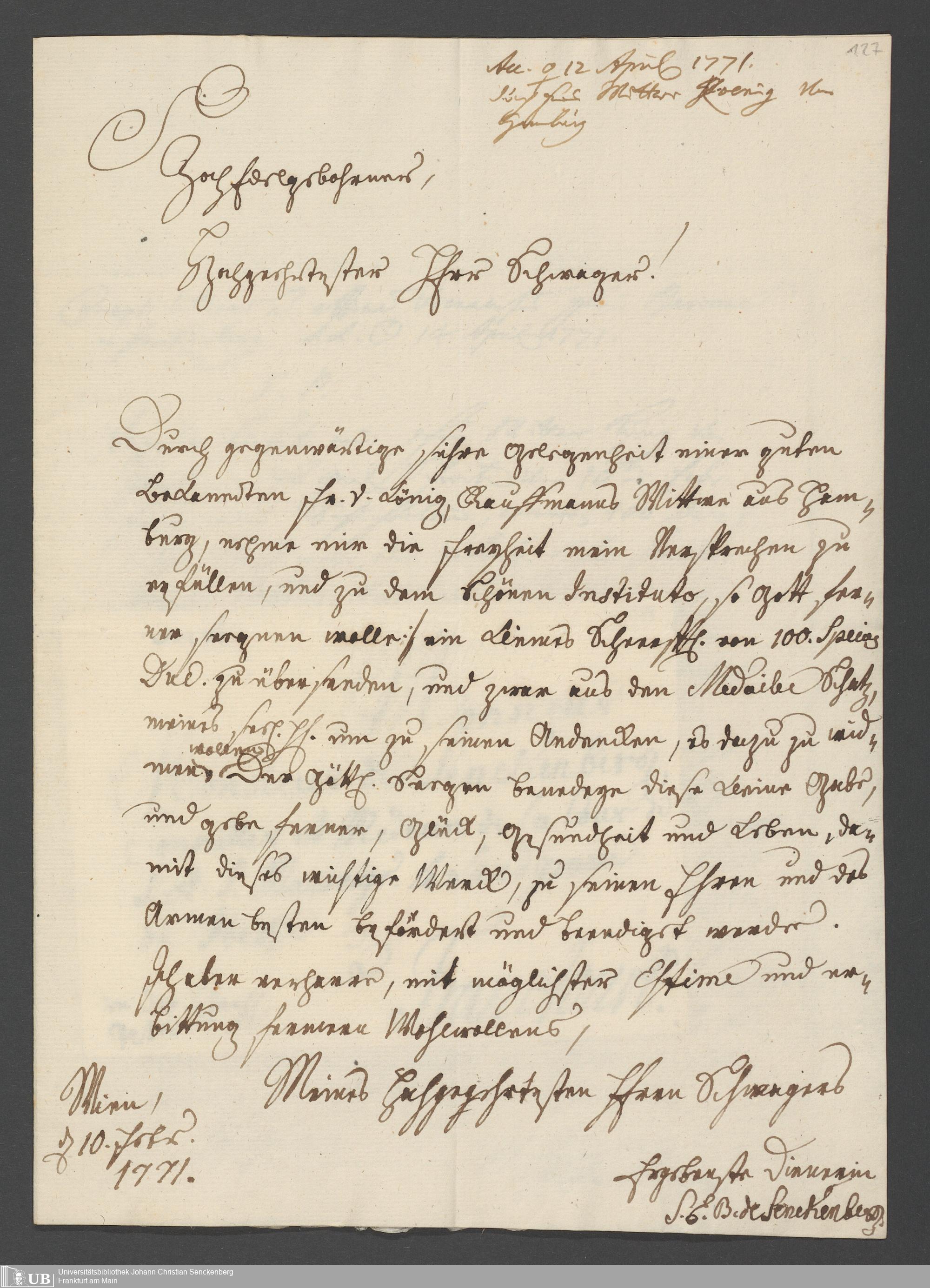 Na 31 Nachlass Johann Christian Senckenberg, 363 - Streit um Gottespfennig