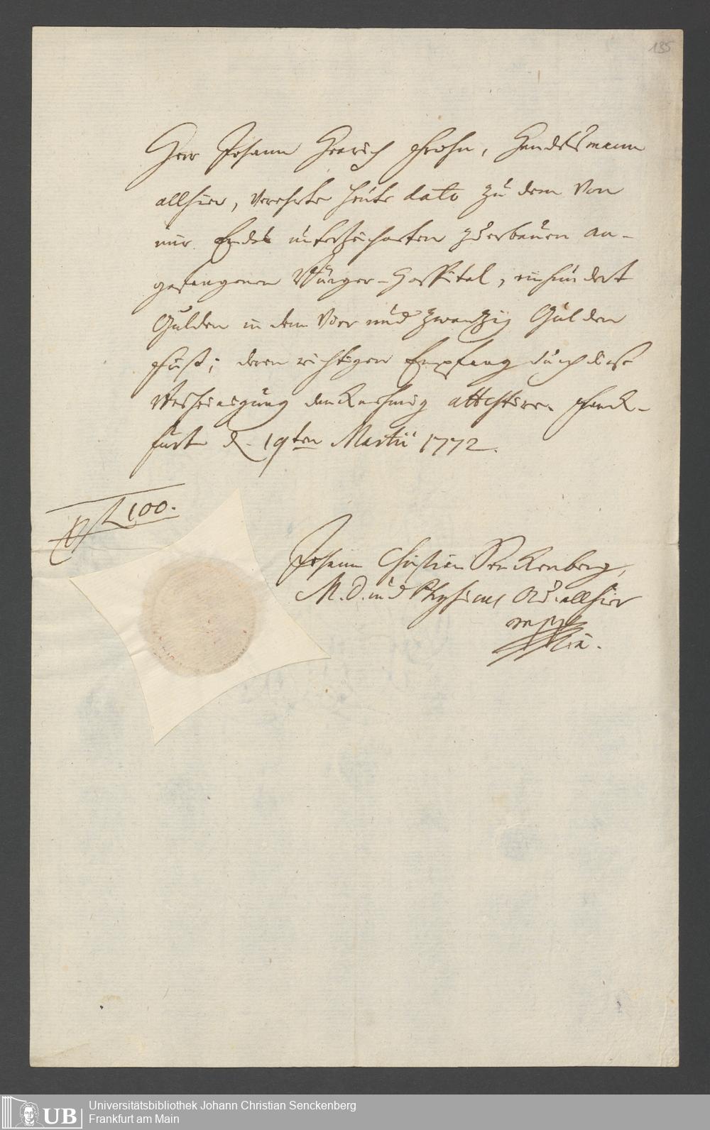 Na 31 Nachlass Johann Christian Senckenberg, 363 - Streit um Gottespfennig