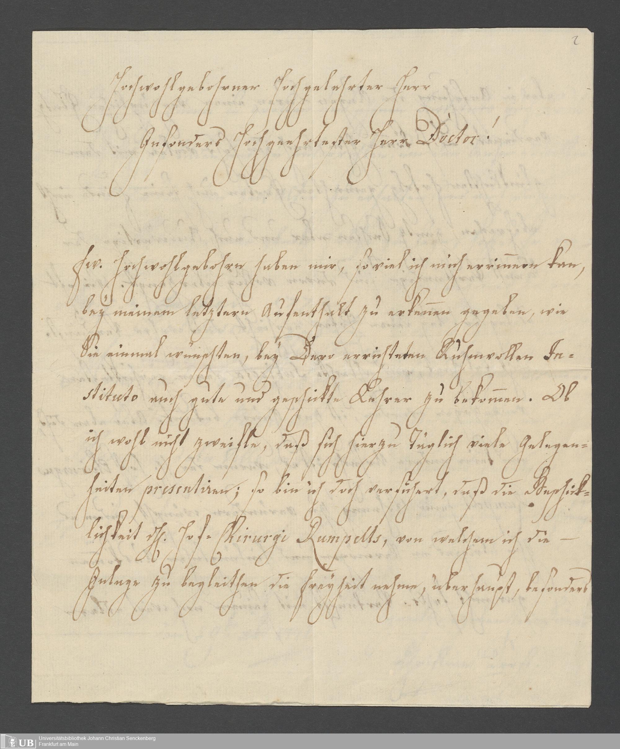 Na 31 Nachlass Johann Christian Senckenberg, 366 - Anstellung eines Lehrers der Anatomie