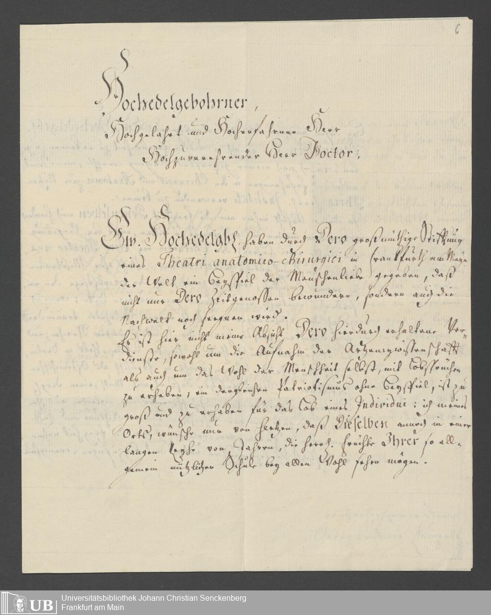 Na 31 Nachlass Johann Christian Senckenberg, 366 - Anstellung eines Lehrers der Anatomie