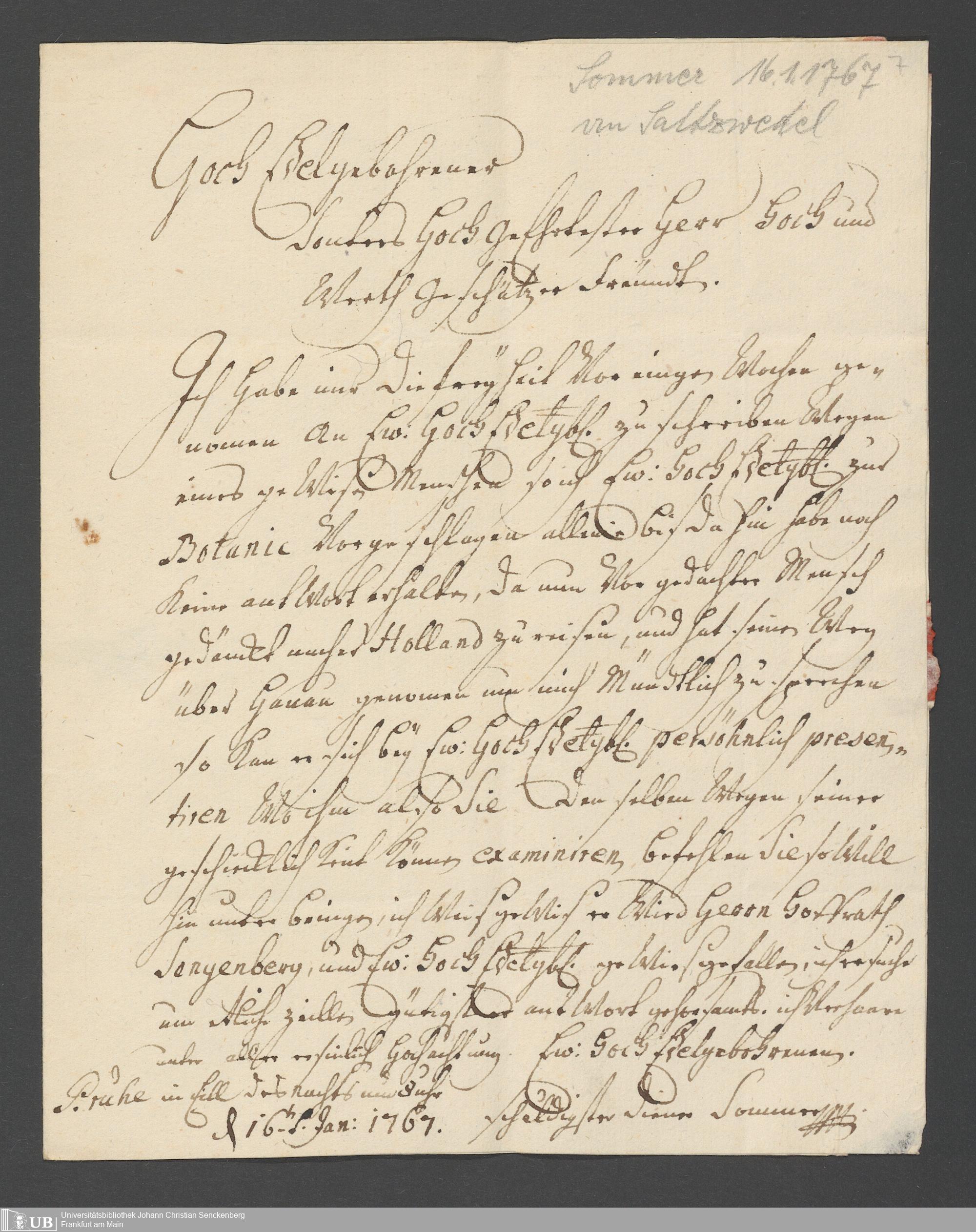 Na 31 Nachlass Johann Christian Senckenberg, 368 - Anstellung eines Gärtners für den Botanischen Garten