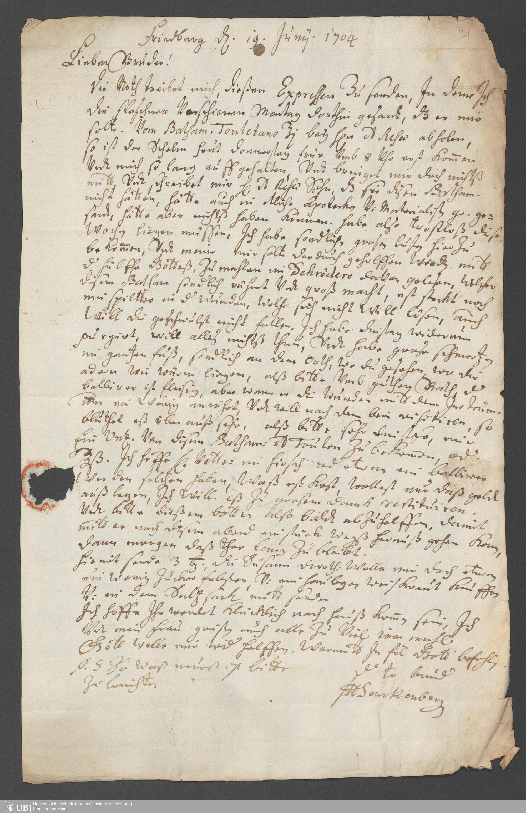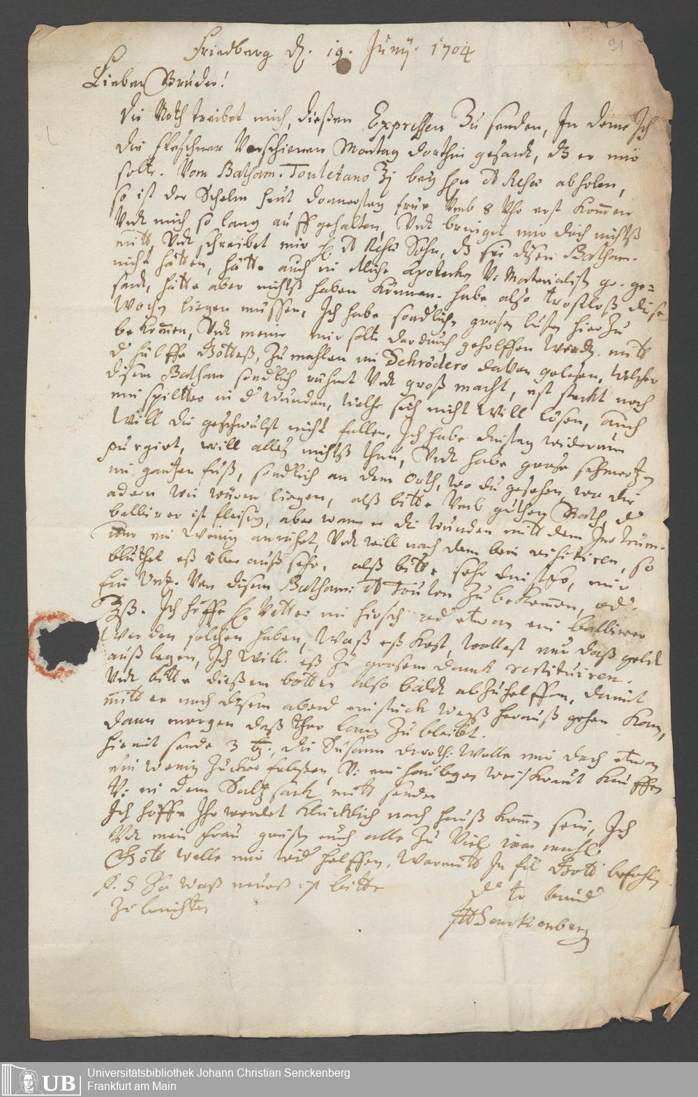 Na 31 Nachlass Johann Christian Senckenberg, 381 - Briefe der nächsten Verwandten