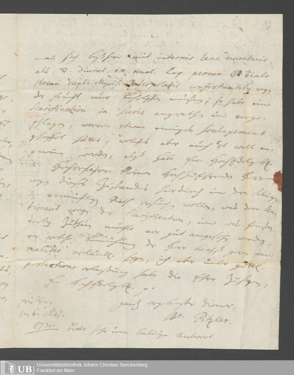 Na 31 Nachlass Johann Christian Senckenberg, 387 - Briefe an Johann Hartmann Senckenberg und seine Frau