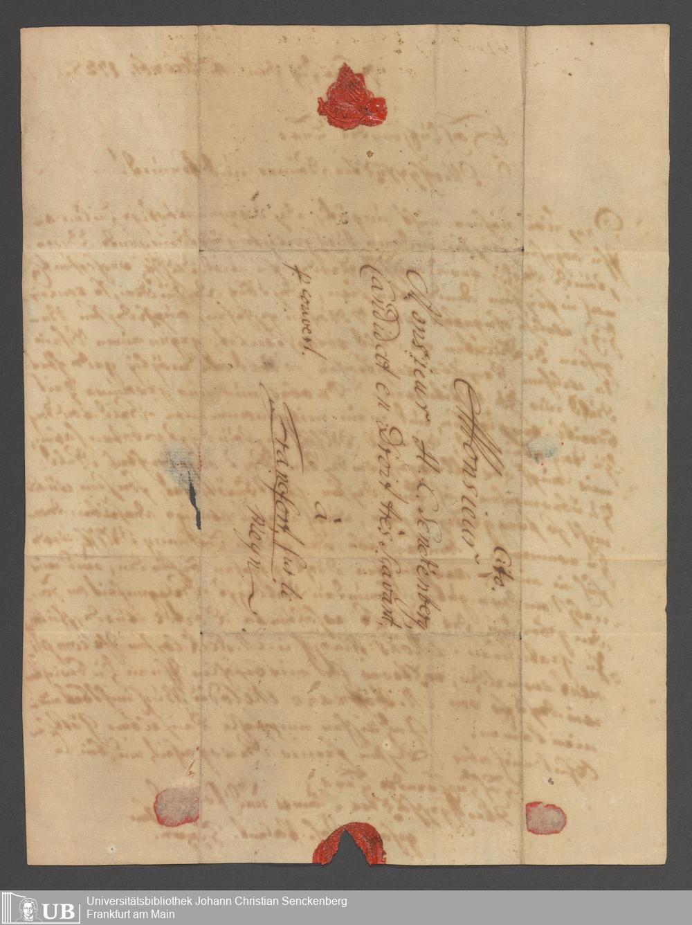 Na 31 Nachlass Johann Christian Senckenberg, 387 - Briefe an Johann Hartmann Senckenberg und seine Frau