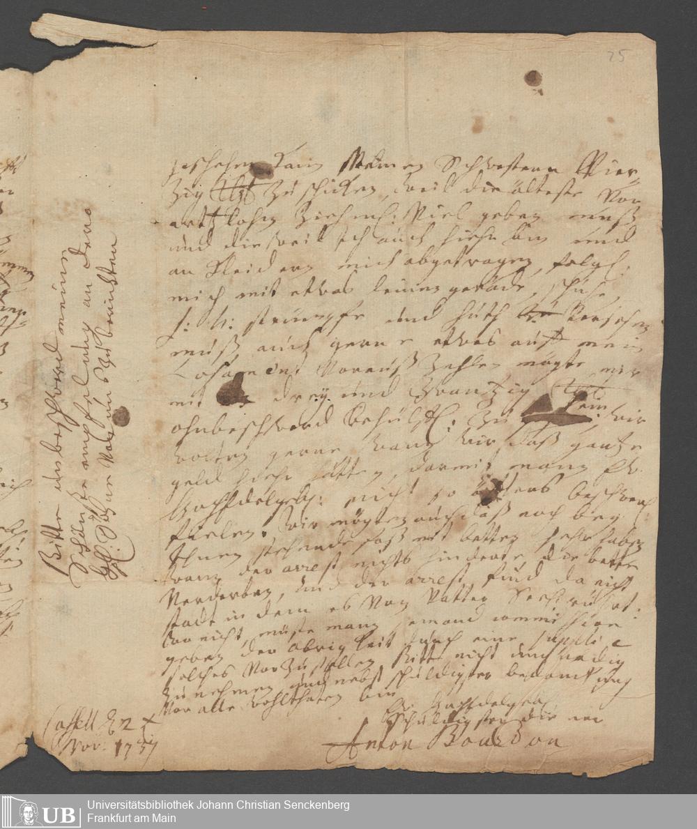 Na 31 Nachlass Johann Christian Senckenberg, 387 - Briefe an Johann Hartmann Senckenberg und seine Frau