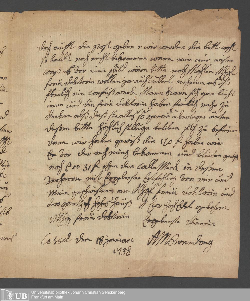 Na 31 Nachlass Johann Christian Senckenberg, 387 - Briefe an Johann Hartmann Senckenberg und seine Frau