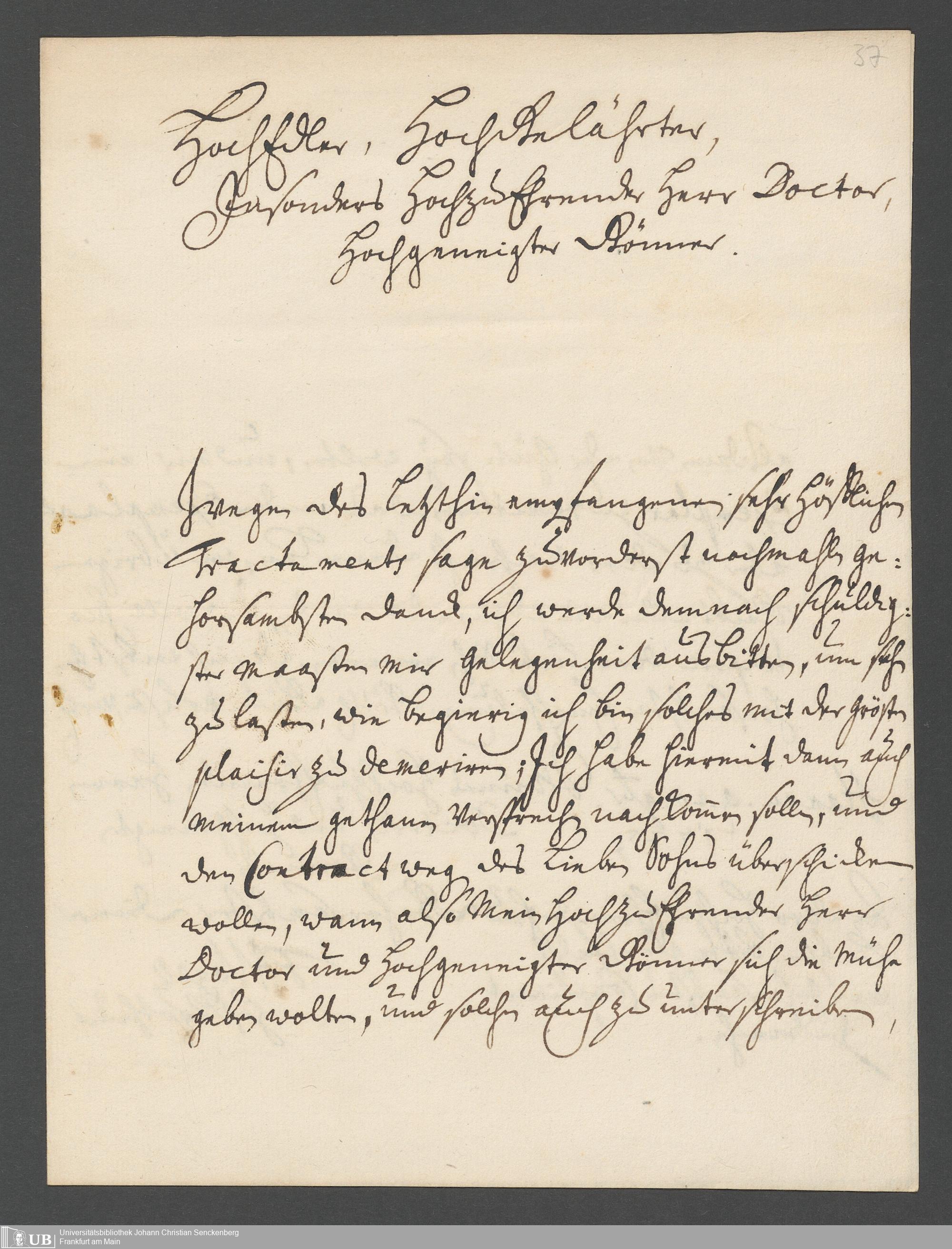 Na 31 Nachlass Johann Christian Senckenberg, 387 - Briefe an Johann Hartmann Senckenberg und seine Frau
