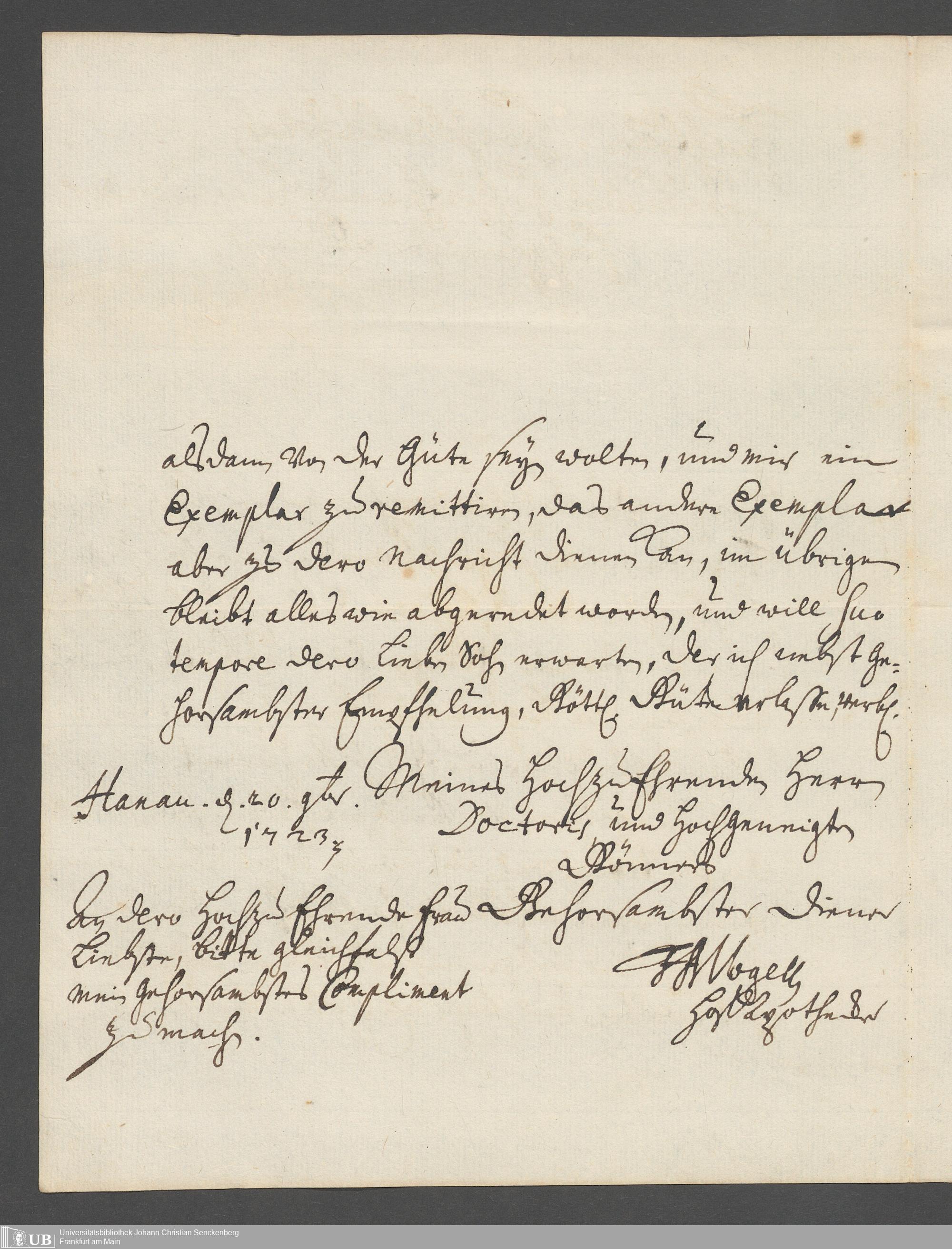 Na 31 Nachlass Johann Christian Senckenberg, 387 - Briefe an Johann Hartmann Senckenberg und seine Frau