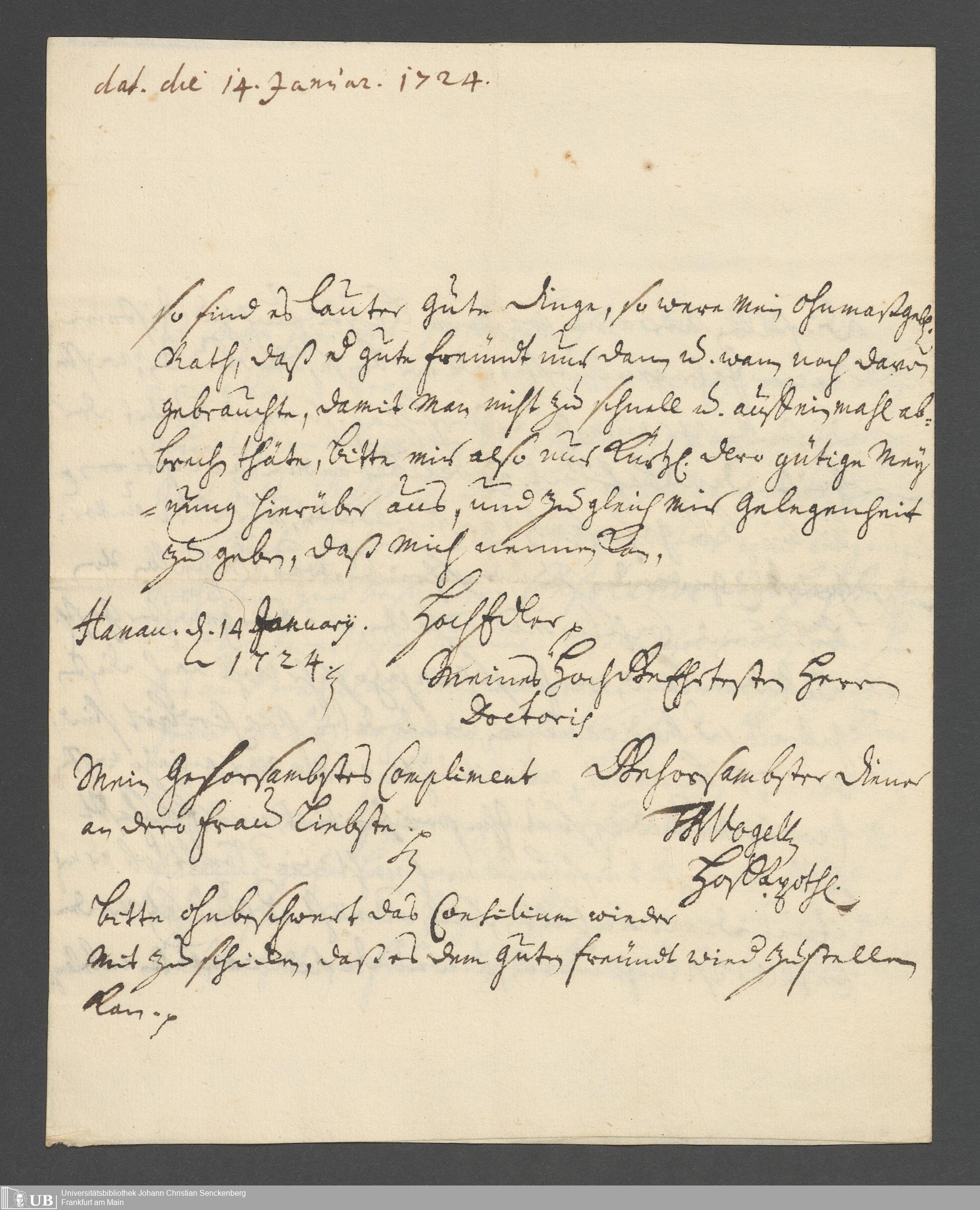 Na 31 Nachlass Johann Christian Senckenberg, 387 - Briefe an Johann Hartmann Senckenberg und seine Frau