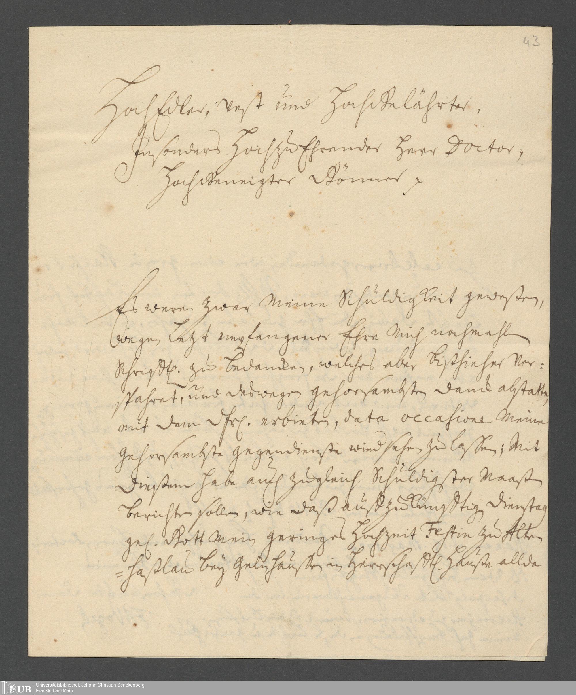 Na 31 Nachlass Johann Christian Senckenberg, 387 - Briefe an Johann Hartmann Senckenberg und seine Frau