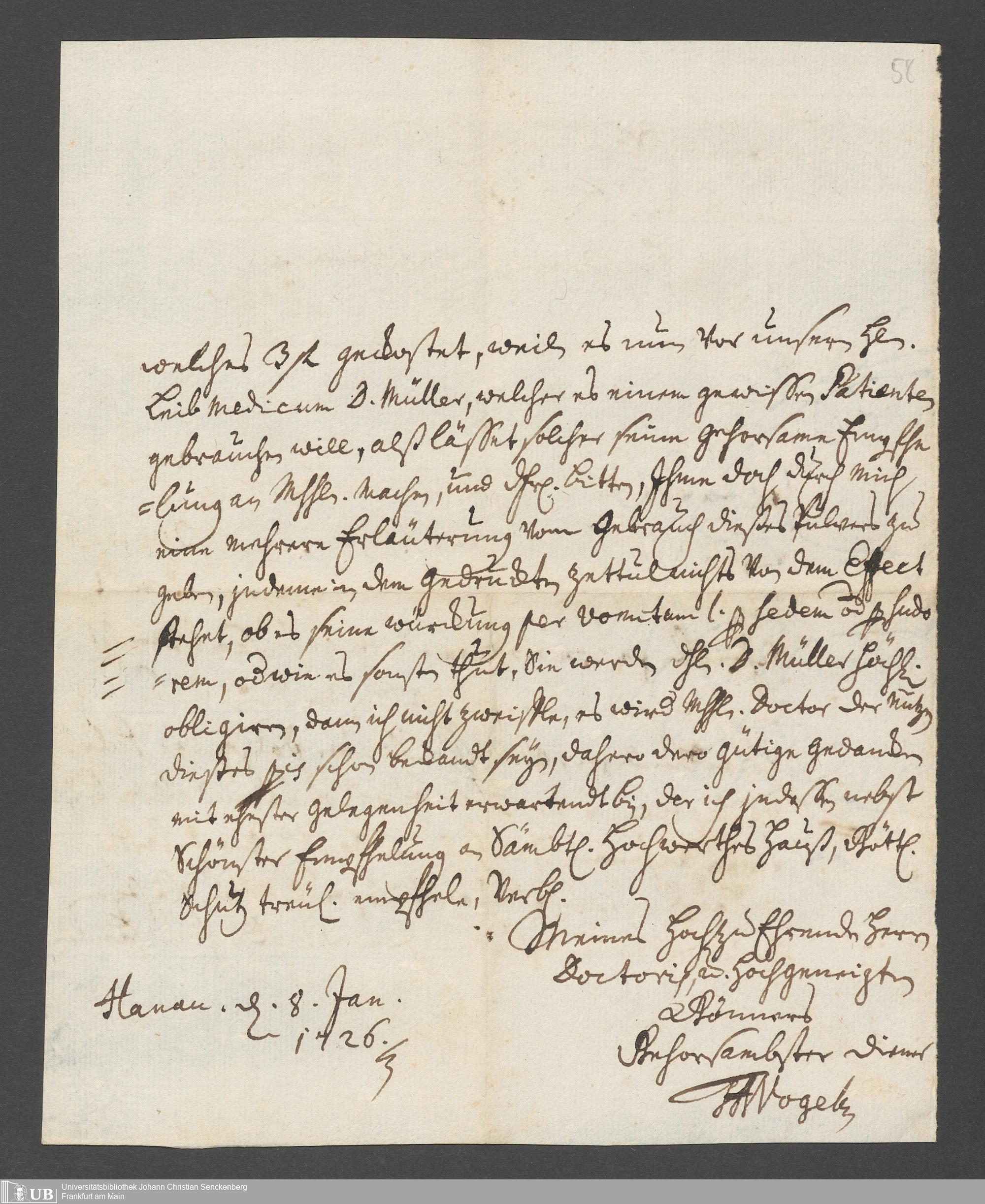 Na 31 Nachlass Johann Christian Senckenberg, 387 - Briefe an Johann Hartmann Senckenberg und seine Frau