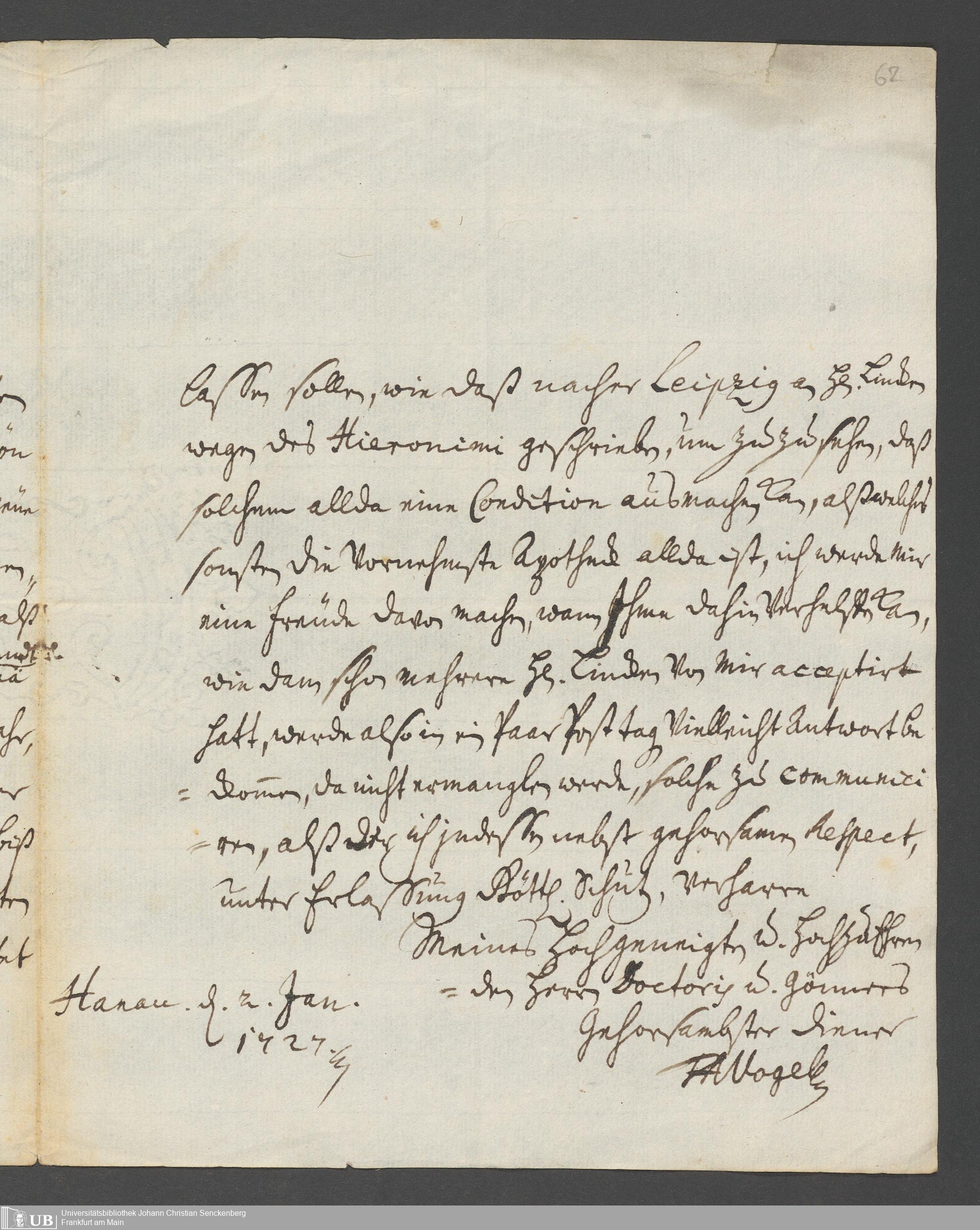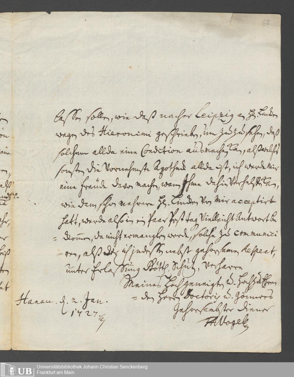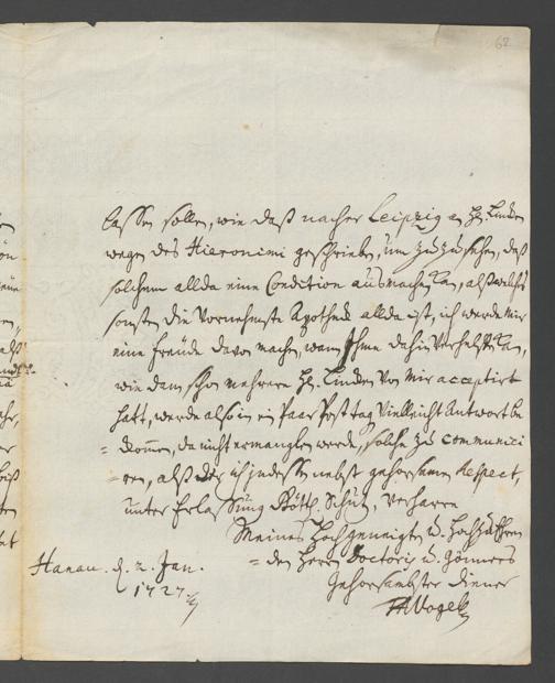 Na 31 Nachlass Johann Christian Senckenberg, 387 - Briefe an Johann Hartmann Senckenberg und seine Frau