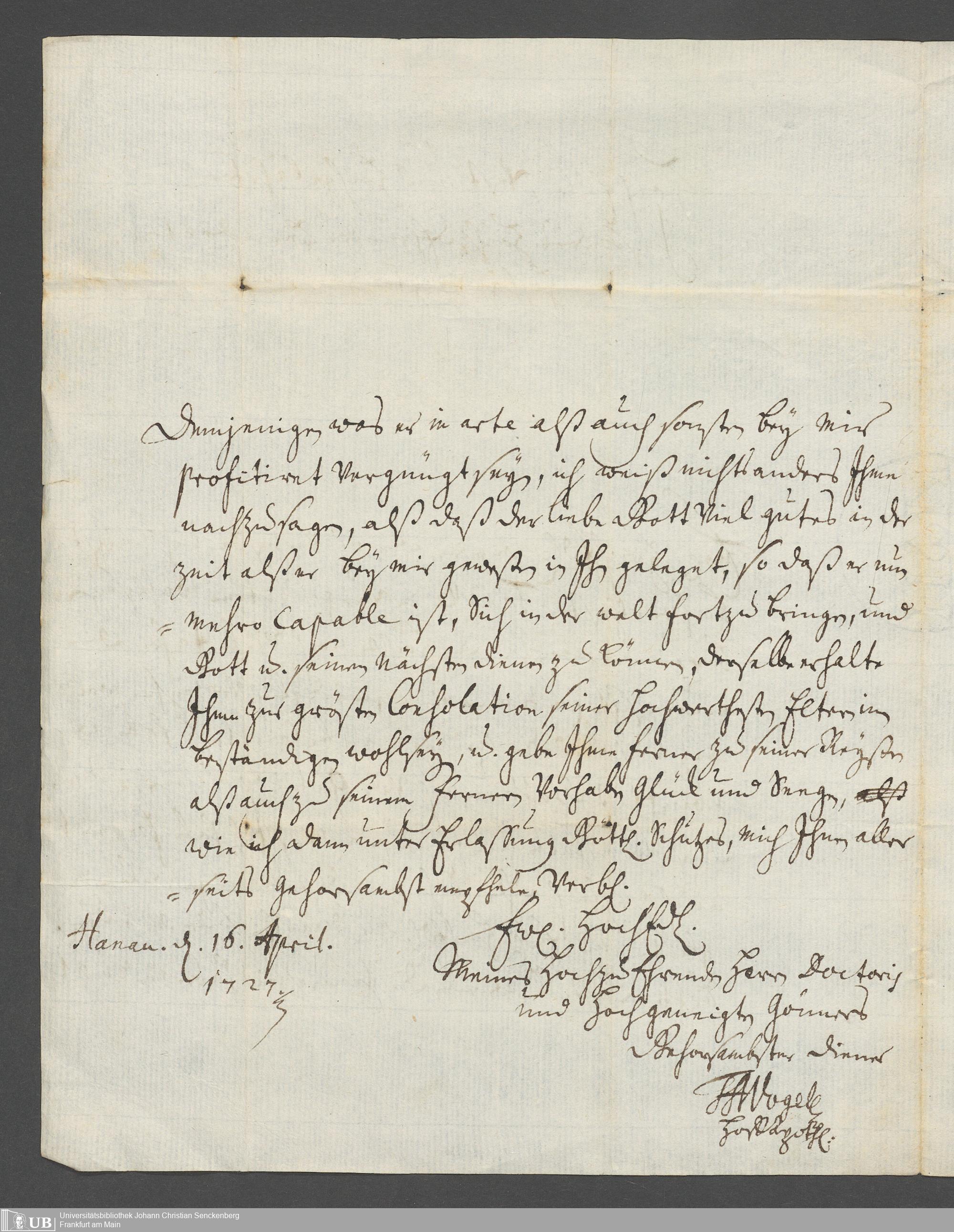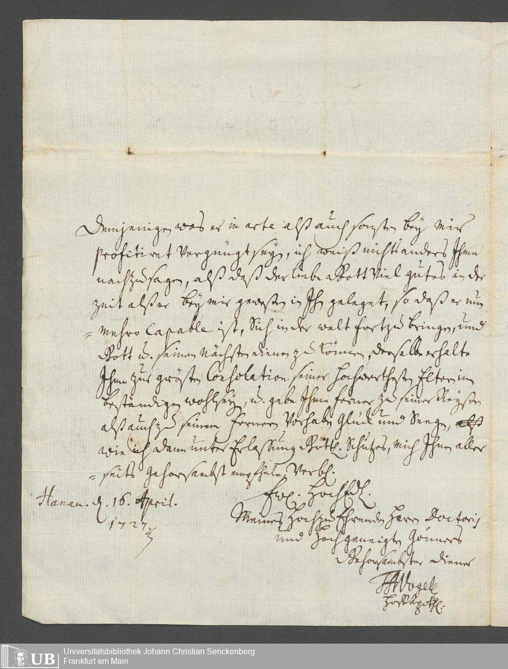 Na 31 Nachlass Johann Christian Senckenberg, 387 - Briefe an Johann Hartmann Senckenberg und seine Frau