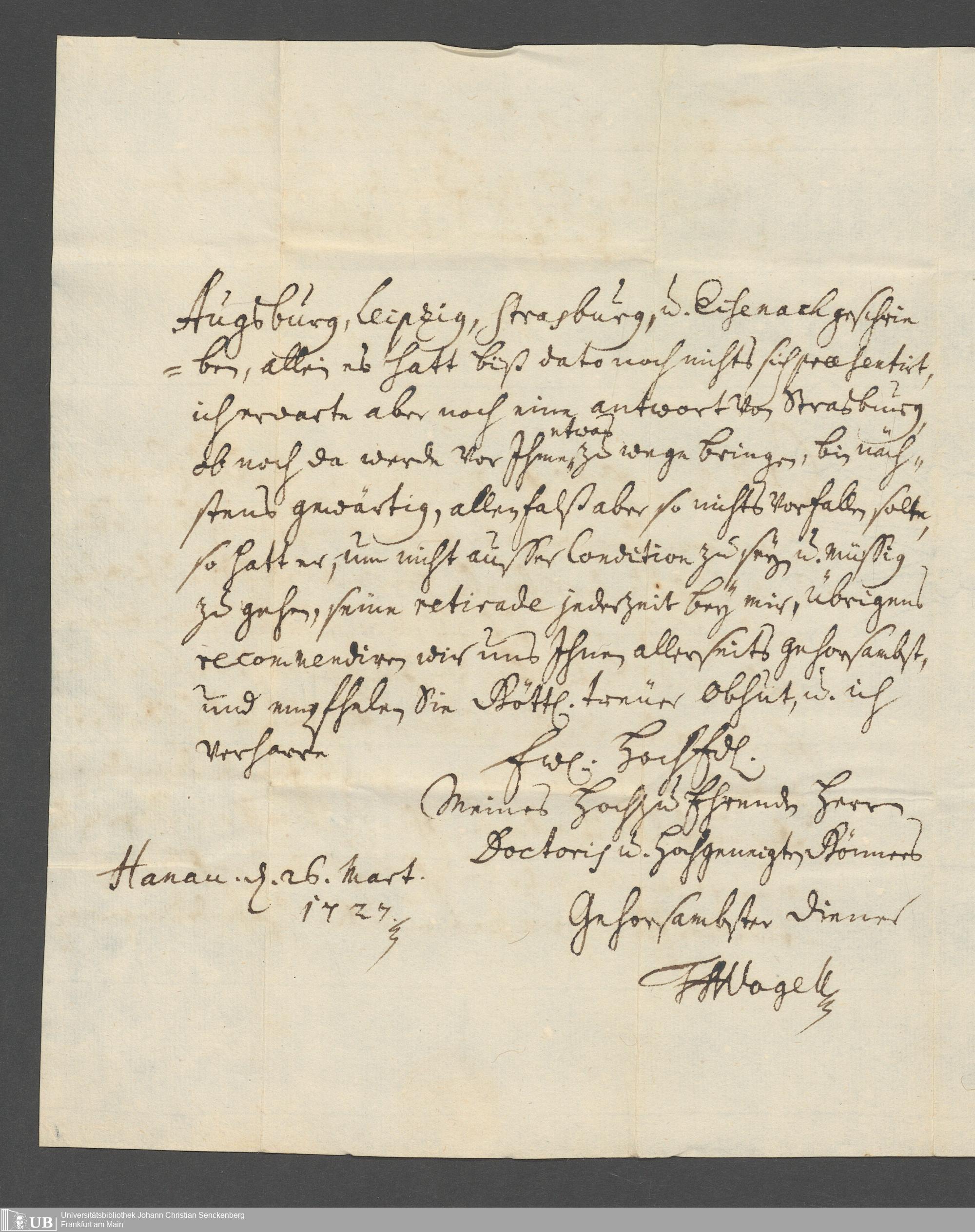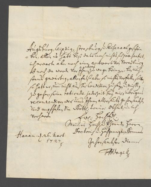 Na 31 Nachlass Johann Christian Senckenberg, 387 - Briefe an Johann Hartmann Senckenberg und seine Frau