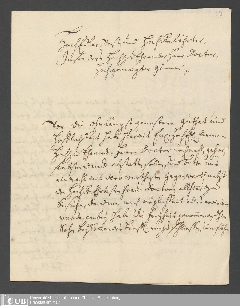 Na 31 Nachlass Johann Christian Senckenberg, 387 - Briefe an Johann Hartmann Senckenberg und seine Frau