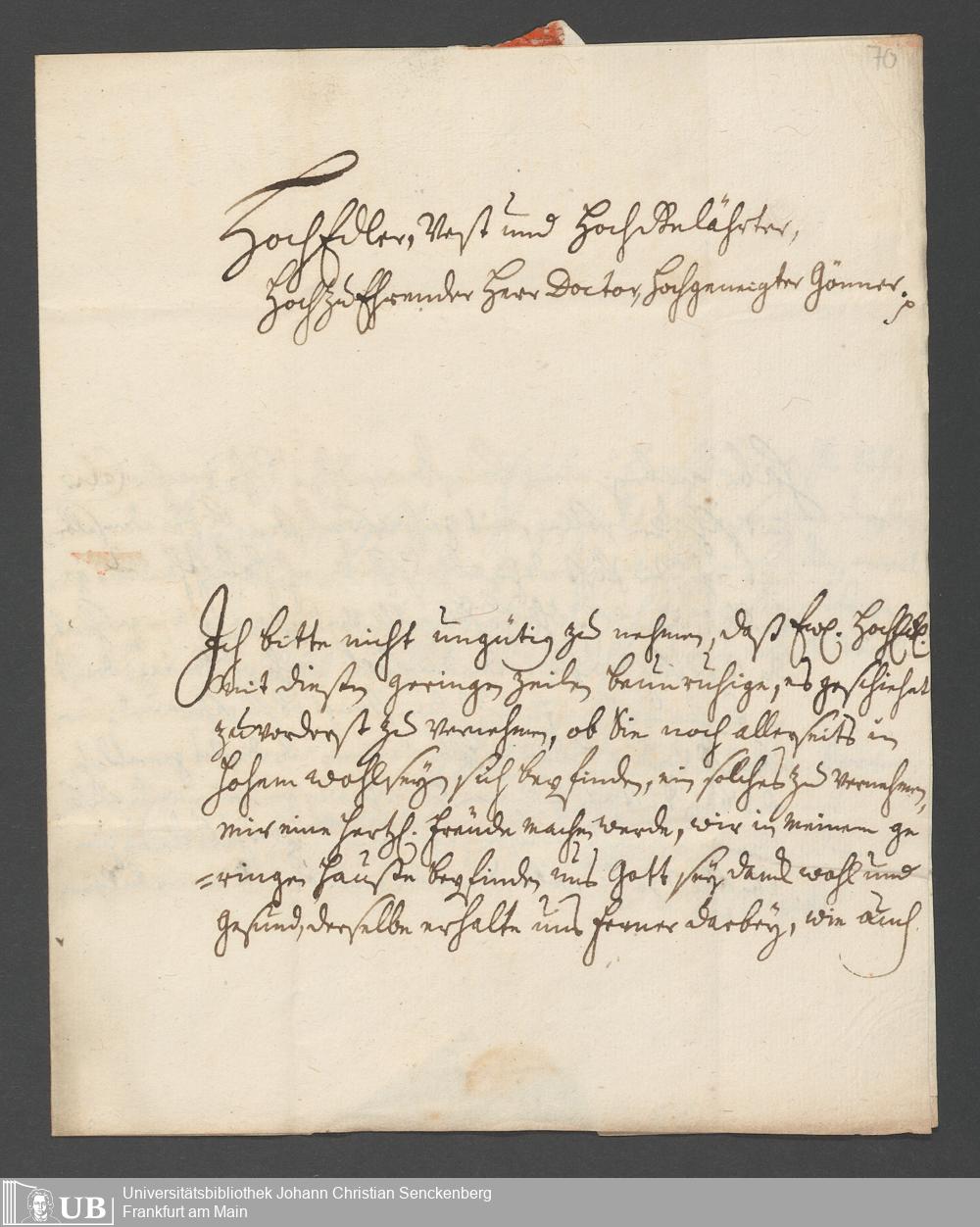 Na 31 Nachlass Johann Christian Senckenberg, 387 - Briefe an Johann Hartmann Senckenberg und seine Frau