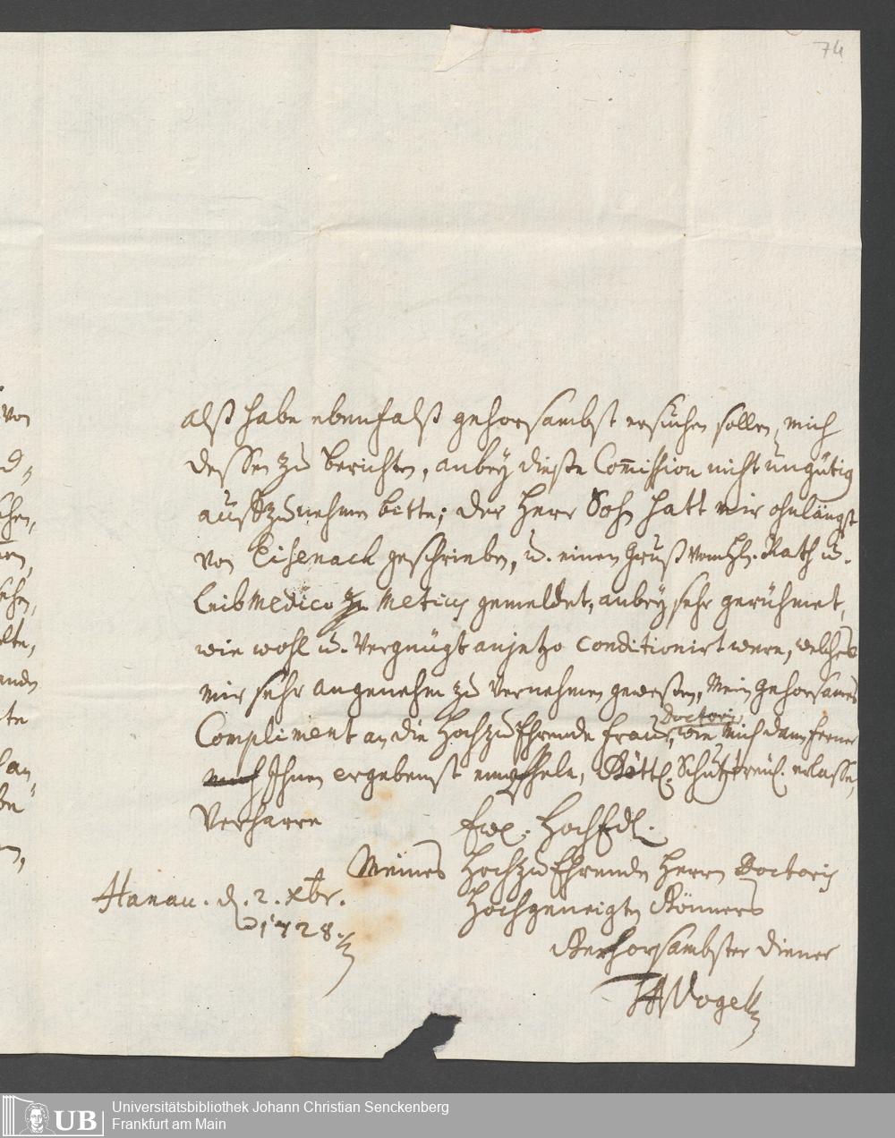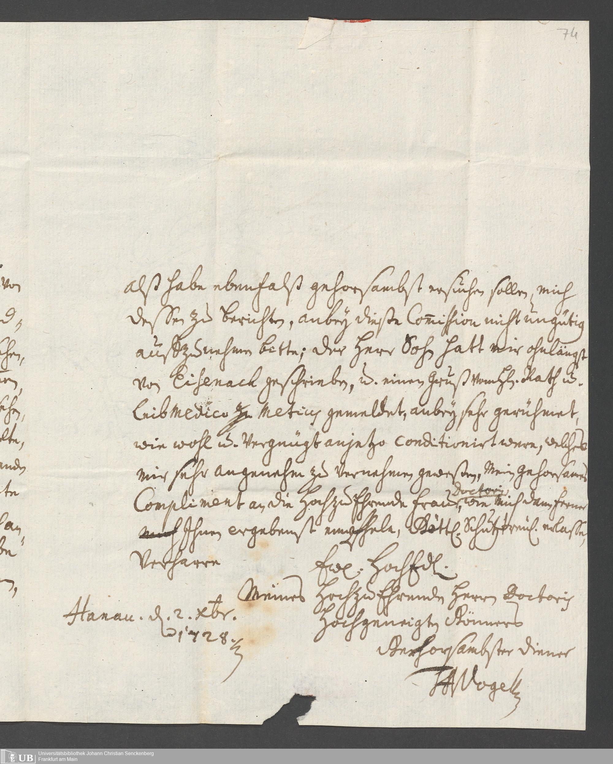 Na 31 Nachlass Johann Christian Senckenberg, 387 - Briefe an Johann Hartmann Senckenberg und seine Frau